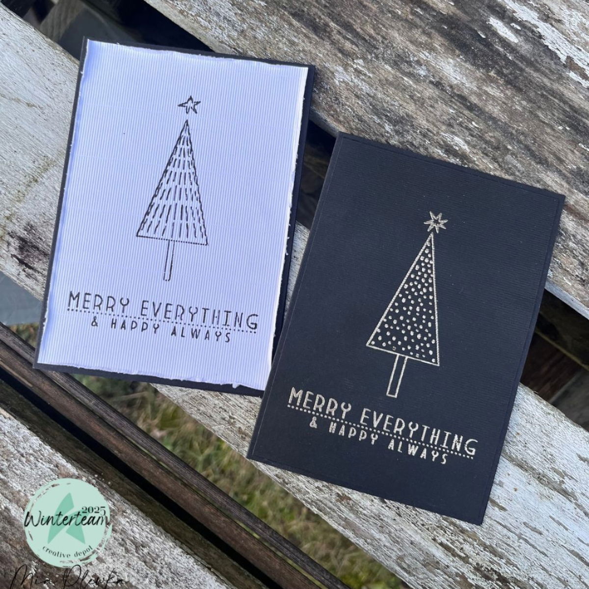 Die Kombination aus klaren Linien, verspielter Typografie und feinen Illustrationen wie Bäumchen 🎄, Kranz, Schneepünktchen ❄️ und kleinen Schriftakzenten zaubert eine moderne und gleichzeitig kuschelige Weihnachtsstimmung.