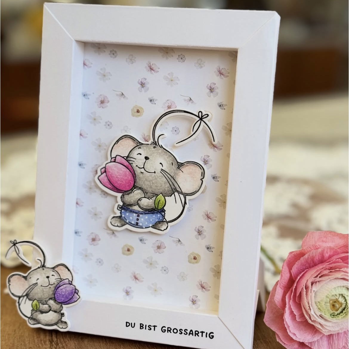 Dieses zauberhafte Stempelset bringt Herzenswärme und Zuversicht in deine Projekte. Die süßen Mäuschen überreichen ein Blümchen 🌼 und begleiten deine Karten mit liebevollen Mutmach-Sprüchen wie: