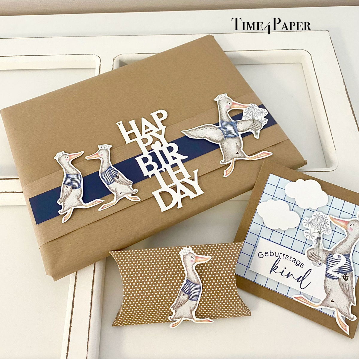 Designpapier - Designline - Laufenten - Blau - Doppelseitig bedruckt
