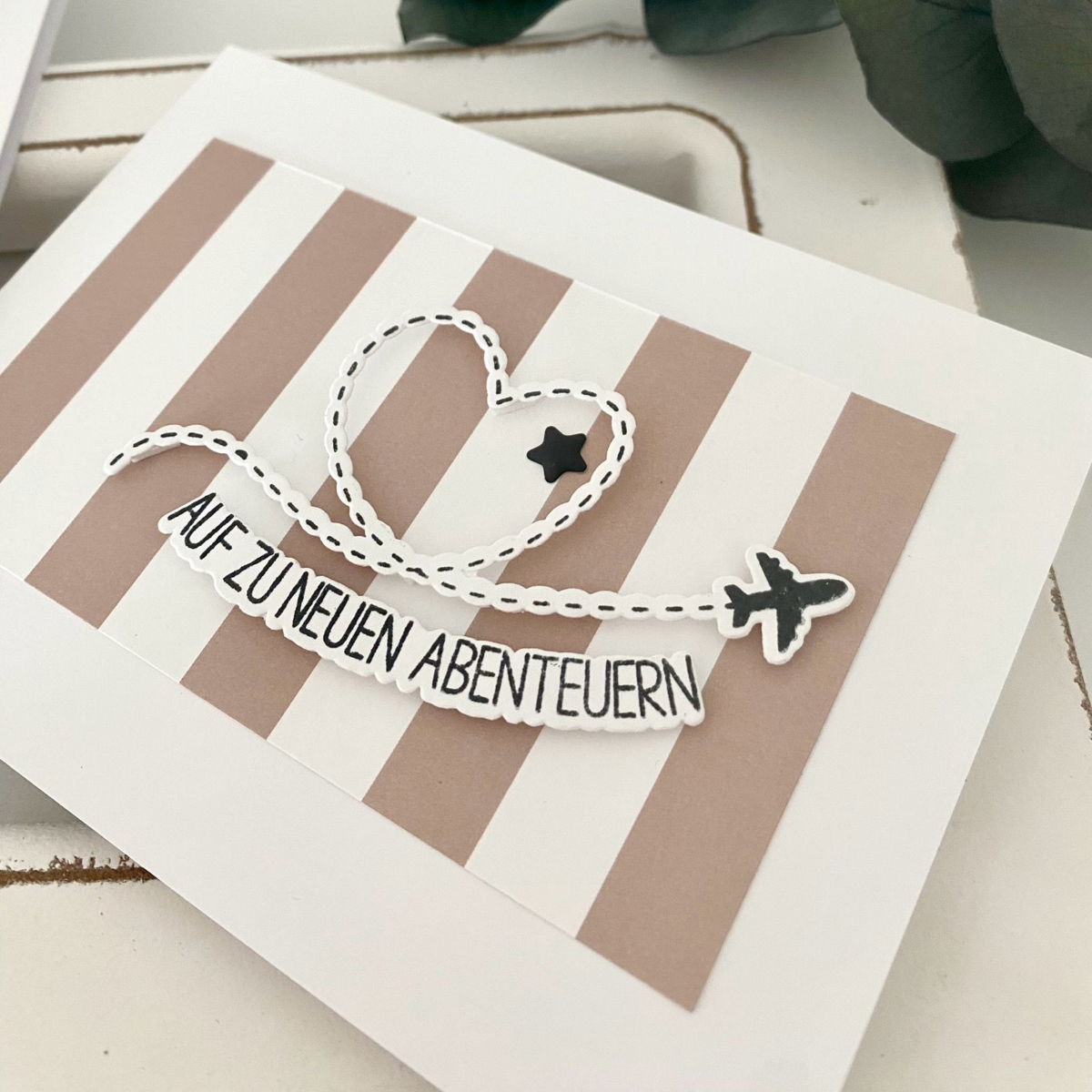 AUF ZU NEUEN ABENTEUERN (ca. 7,5 x 5,6 cm)