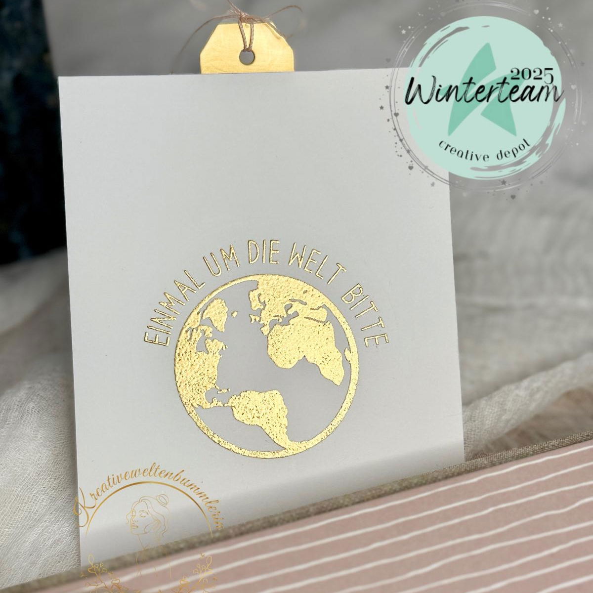 EINMAL UM DIE WELT BITTE (ca. 5,6 x 5,6 cm)