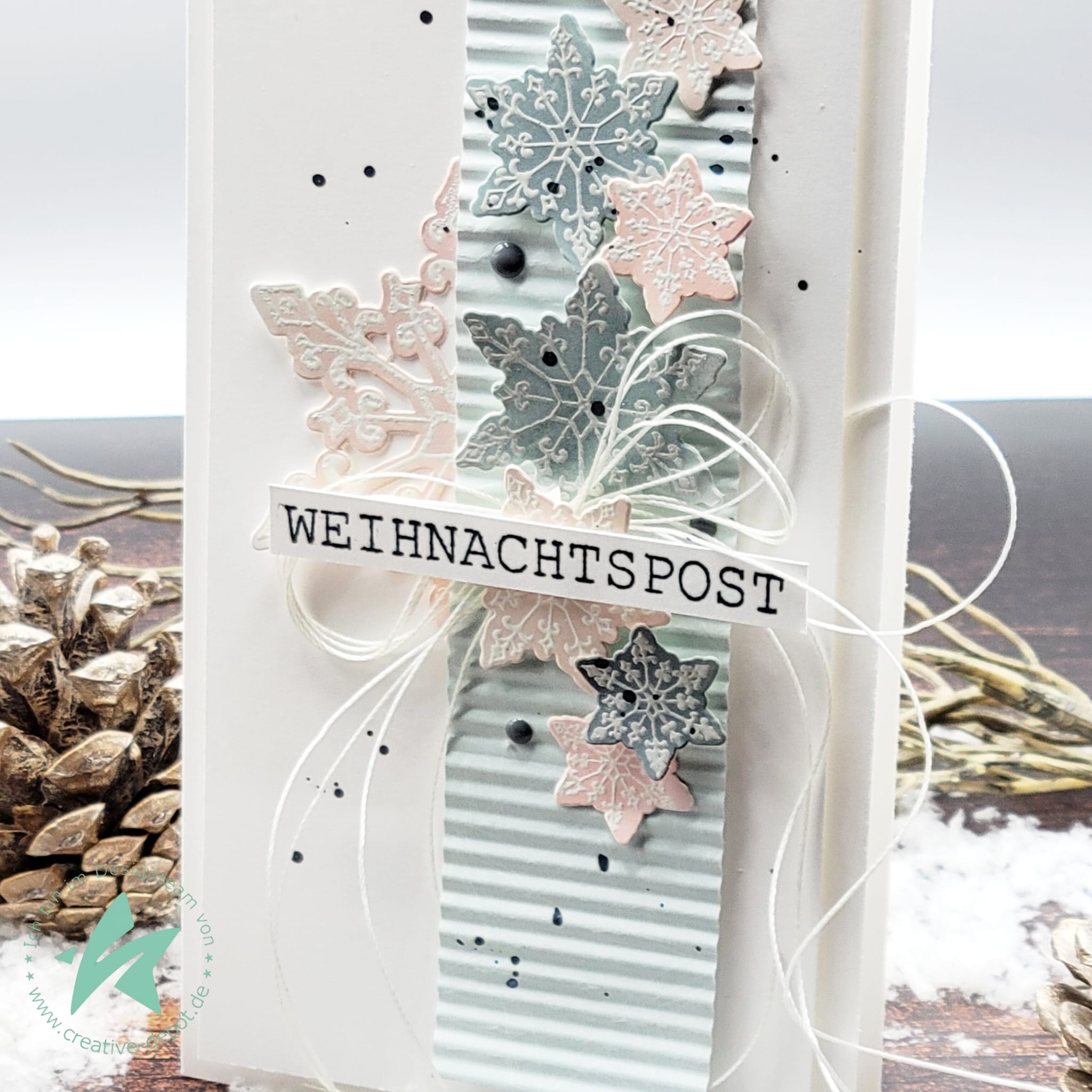 ✨ Kreativ-Tipp: Stemple die Flocken mit schimmernder Metallic- oder Embossingfarbe auf Transparentpapier für einen edlen Eisglanz. Auch ideal als Hintergrundmuster in unterschiedlichen Blautönen.