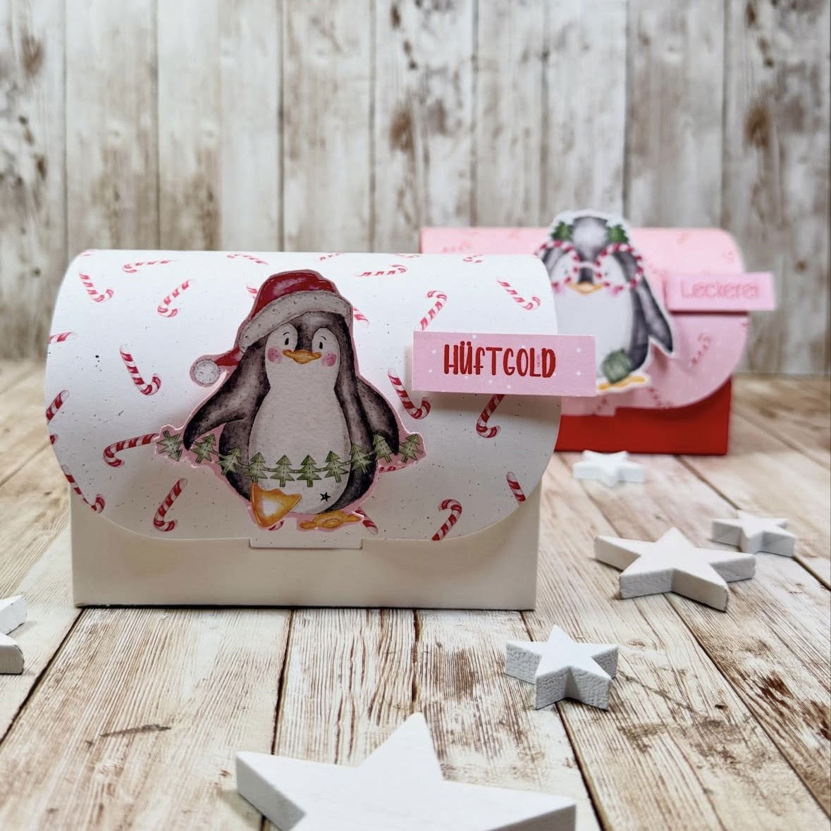 Designpapier - Weihnachtspinguine - Rosa - Doppelseitig bedruckt