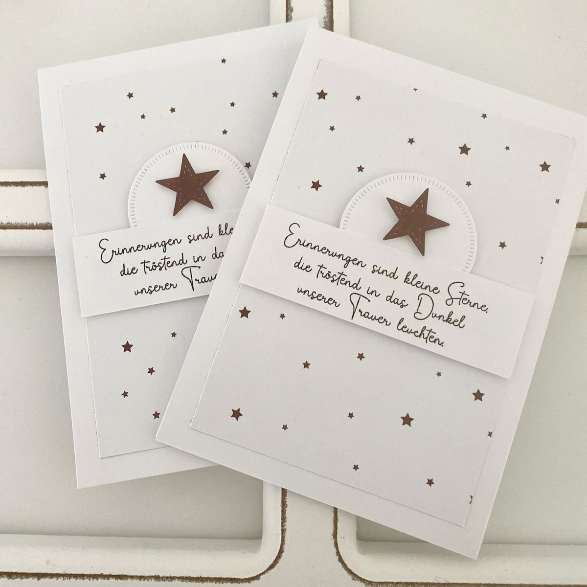 Erinnerungen sind kleine Sterne, die tröstend in das Dunkel unserer Trauer leuchten. (ca. 6,9 x 2,4 cm)