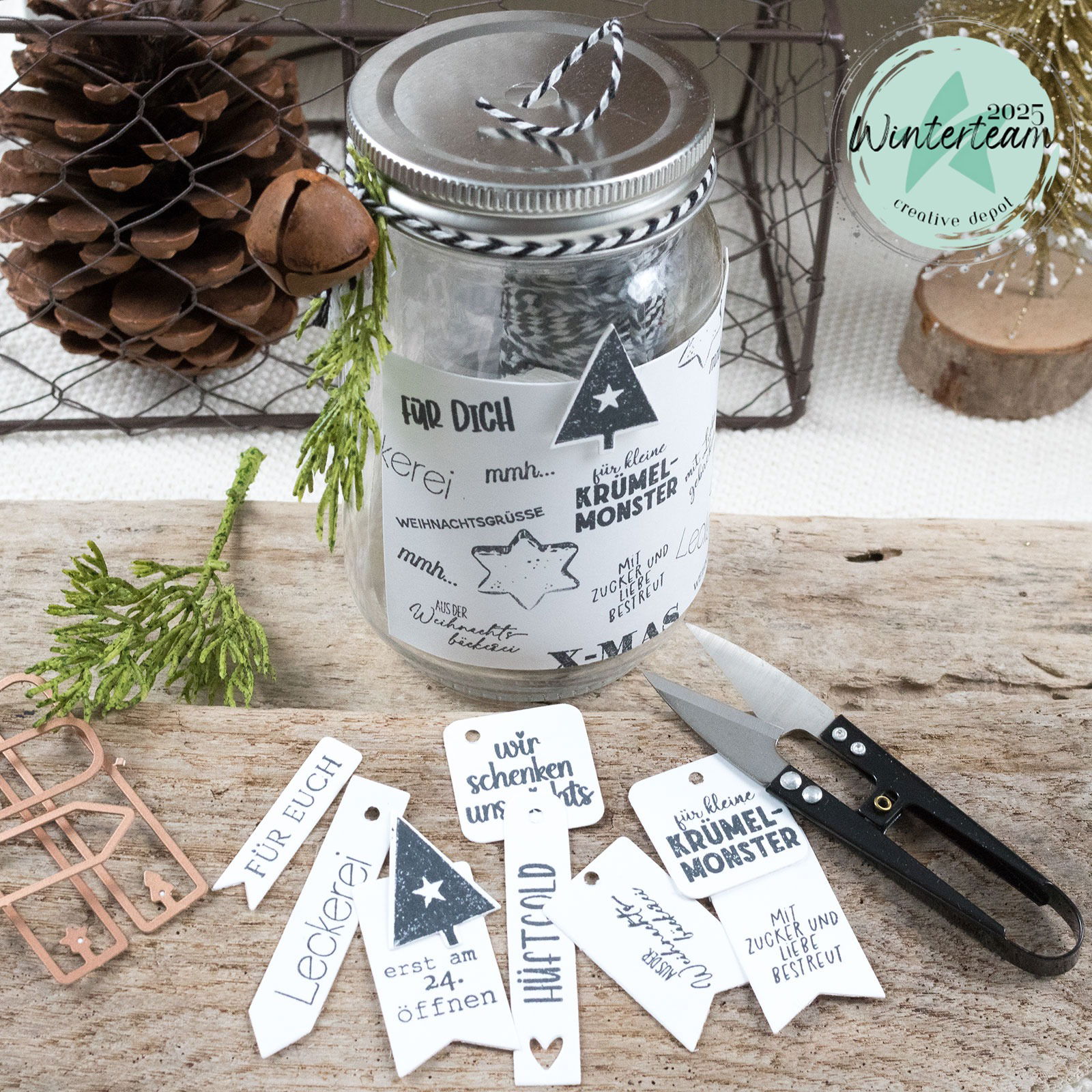 Viele verschiedene Schriftzüge, Wörter und kleine Motive lassen sich untereinander kombinieren und immer wieder neu arrangieren – ideal für individuelle Projekte rund um Advent & Weihnachten.