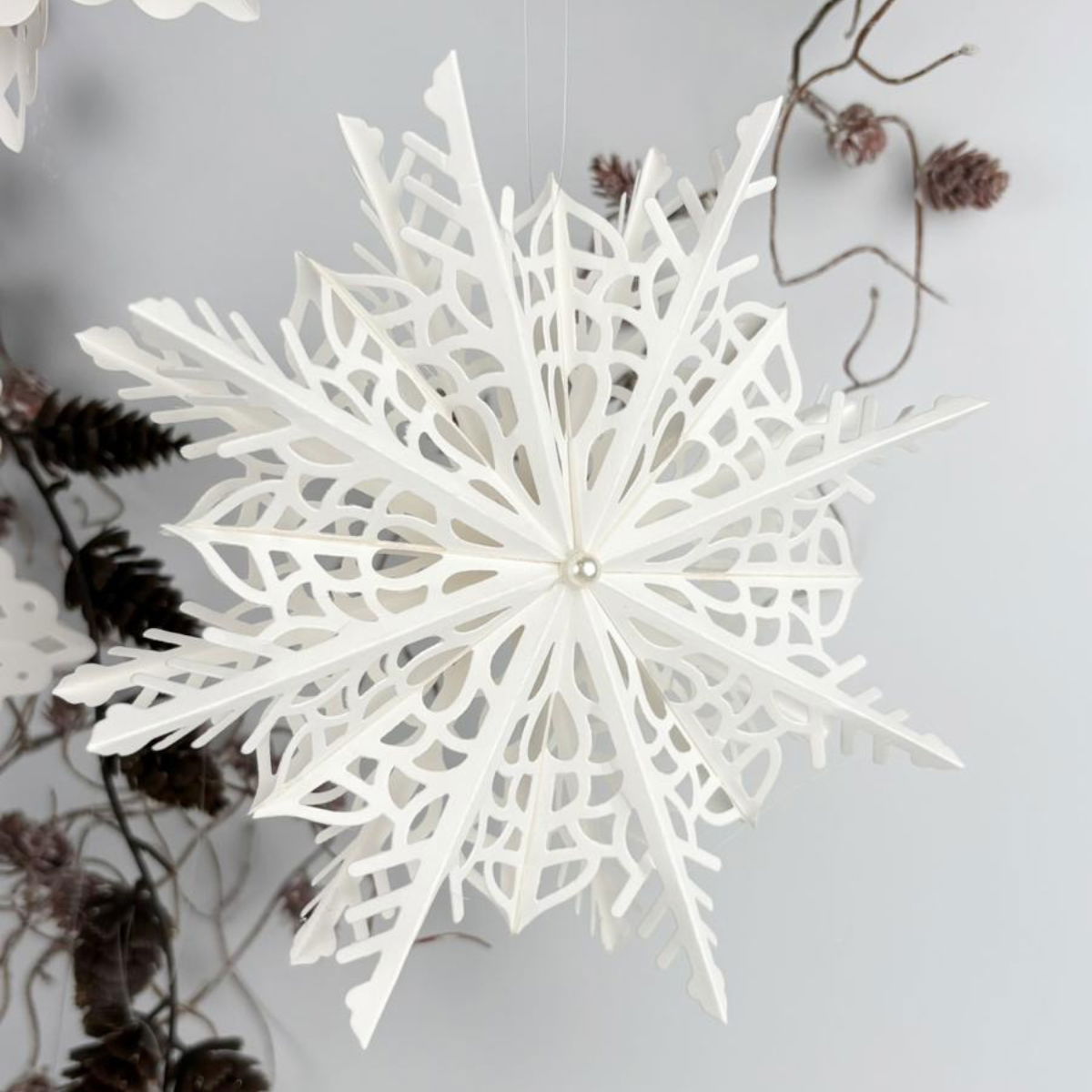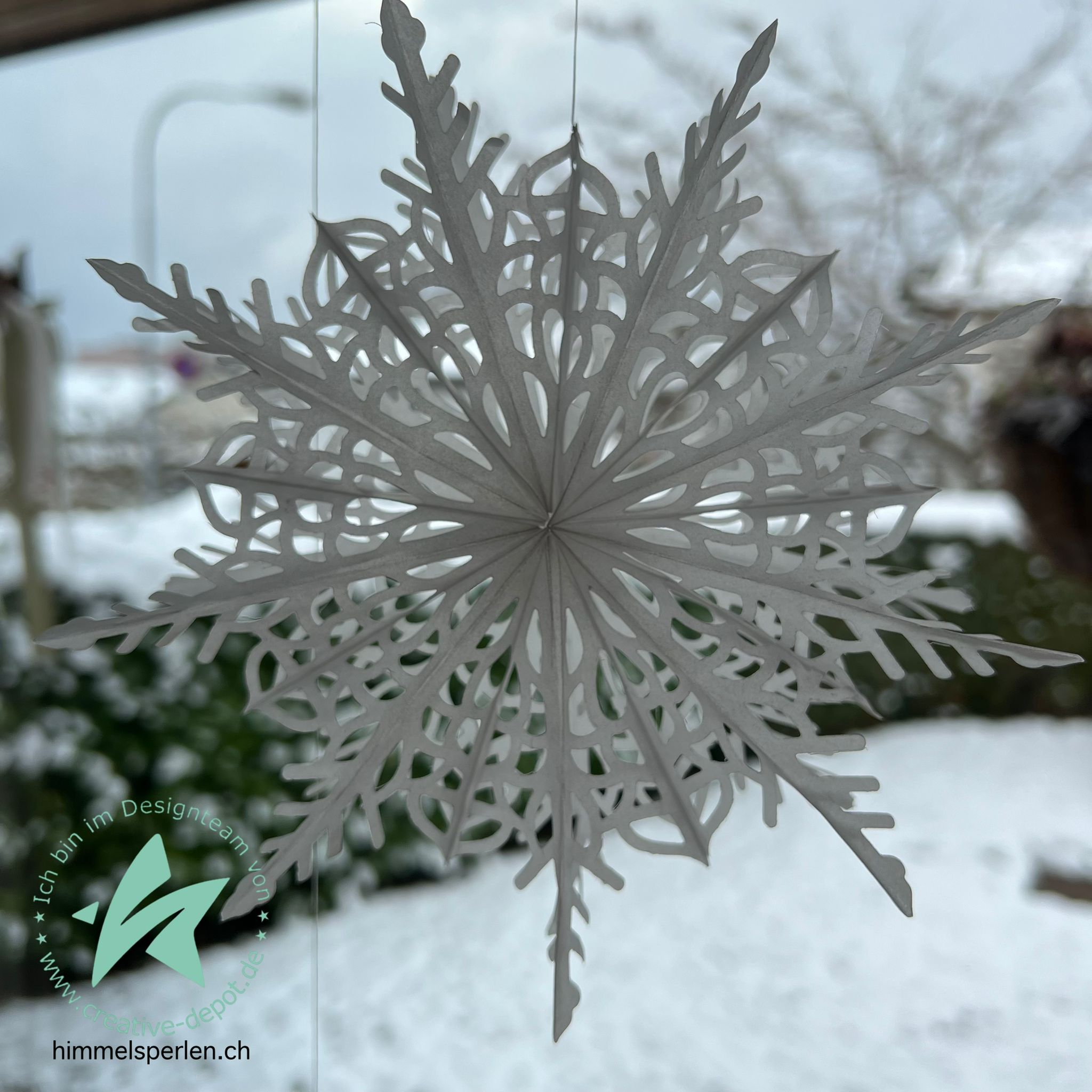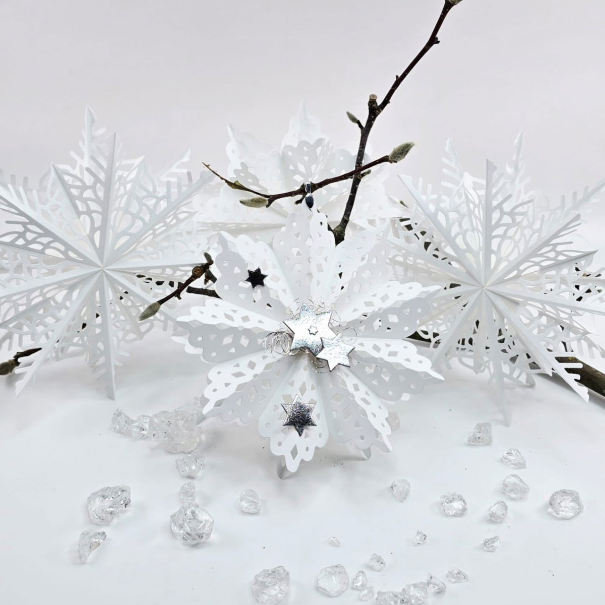 Weihnachts- & Winterdeko: als 3D-Schneeflocke zum Aufhängen am Fenster, Baum oder Kranz