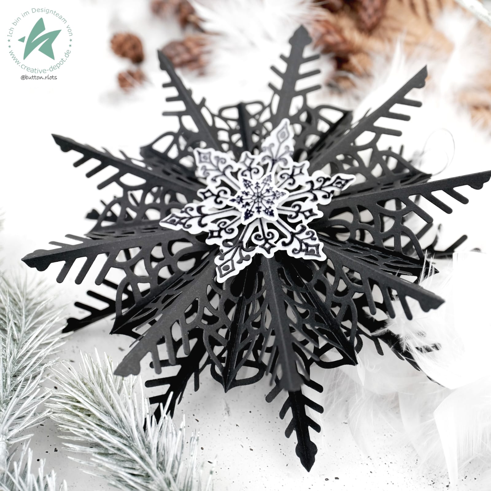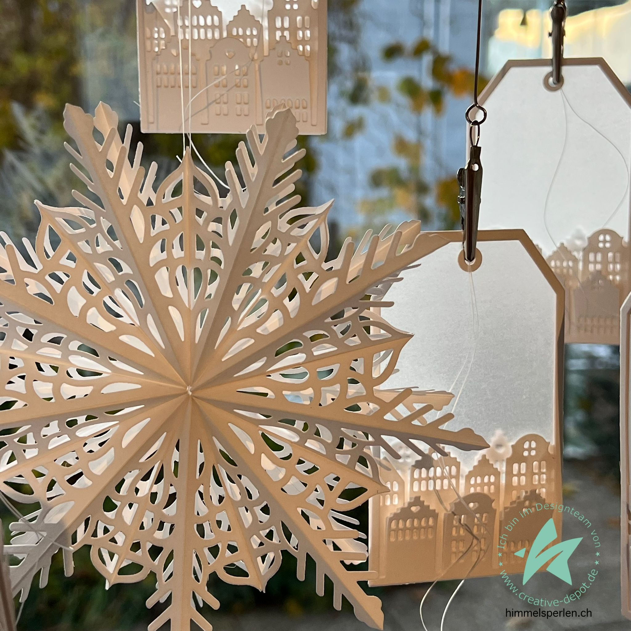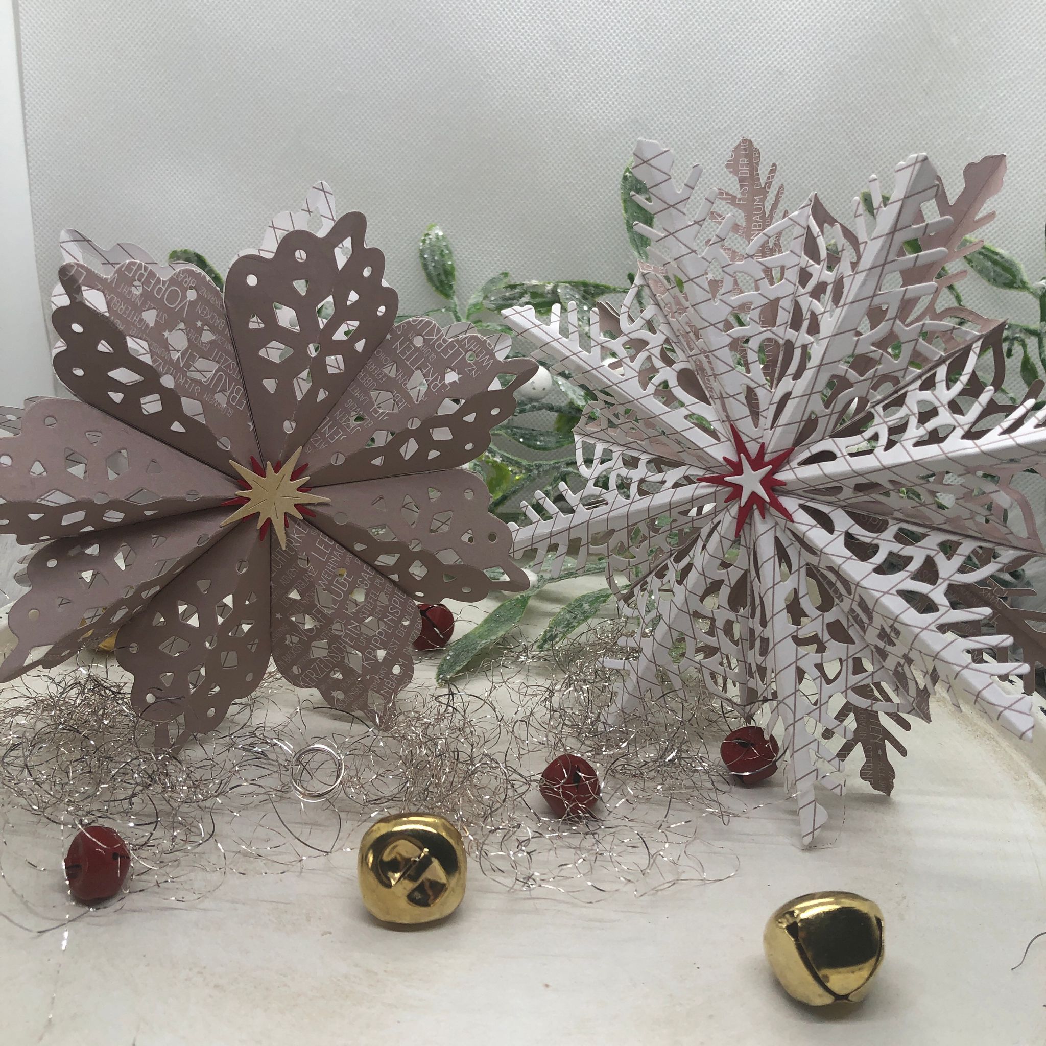 Weihnachts- & Winterdeko: als 3D-Schneeflocke zum Aufhängen am Fenster, Baum oder Kranz