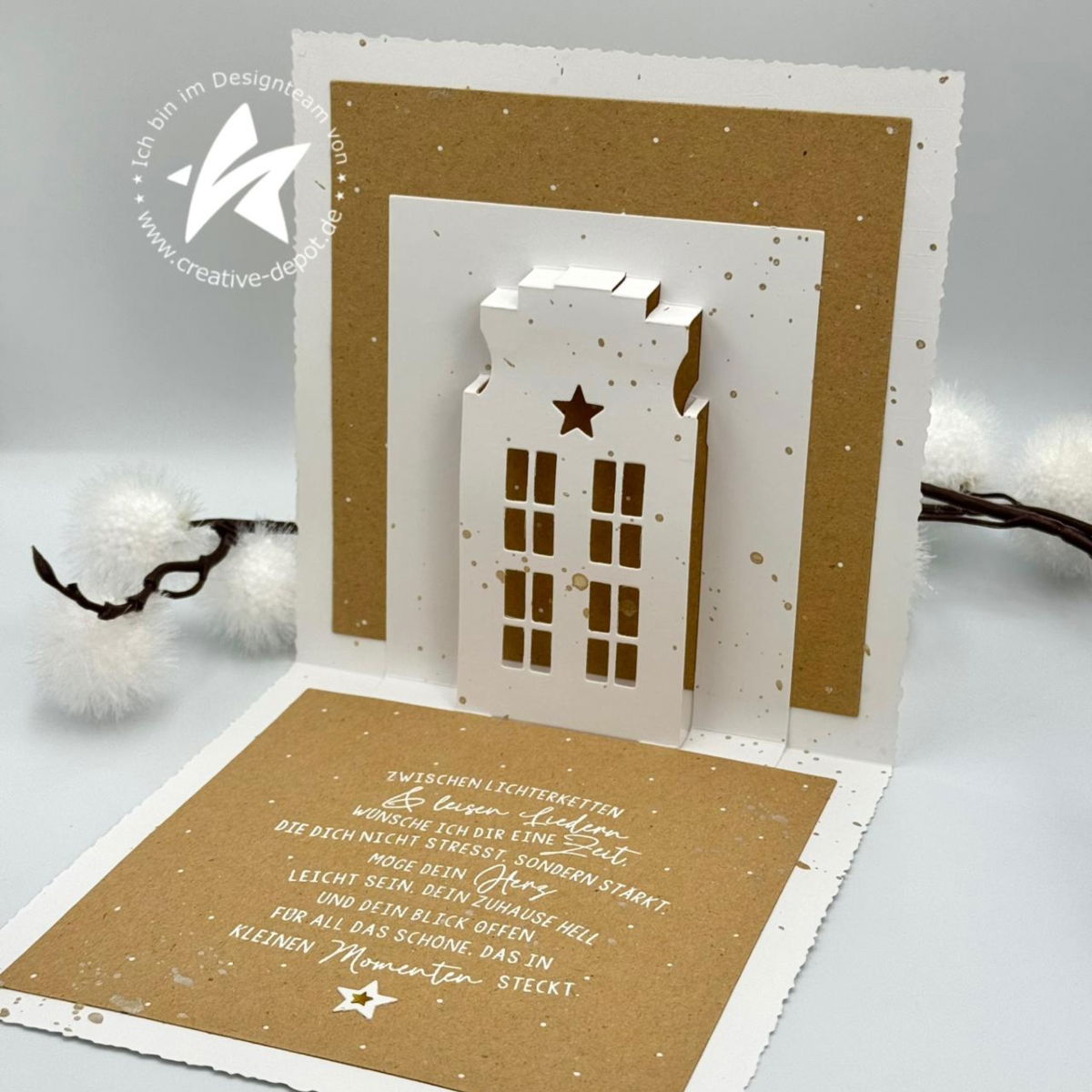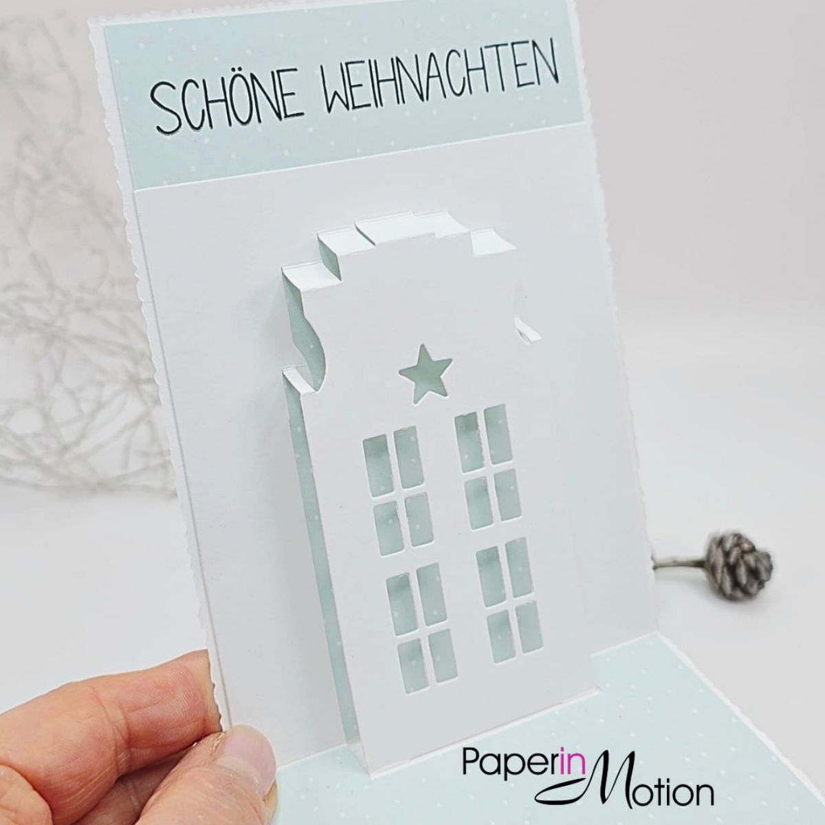 ✨ Der Stern über dem Dach lässt sich wunderschön mit Goldfolie, Embossing oder kleinen Strassteinen hervorheben.