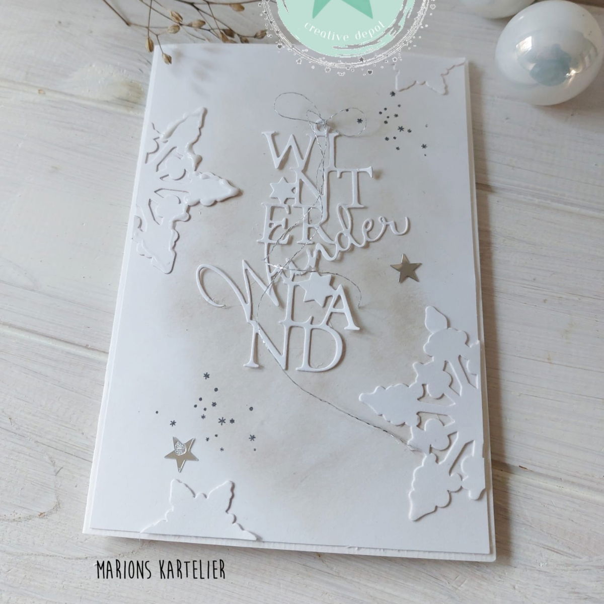 ✨ Tipp: Stanze den Schriftzug aus Glitzerkarton oder Metallicfolie aus und hinterlege ihn mit Transparentpapier – so entsteht ein funkelnder Anhänger im Winterwunderland-Stil, der jede Bastelarbeit verzaubert!