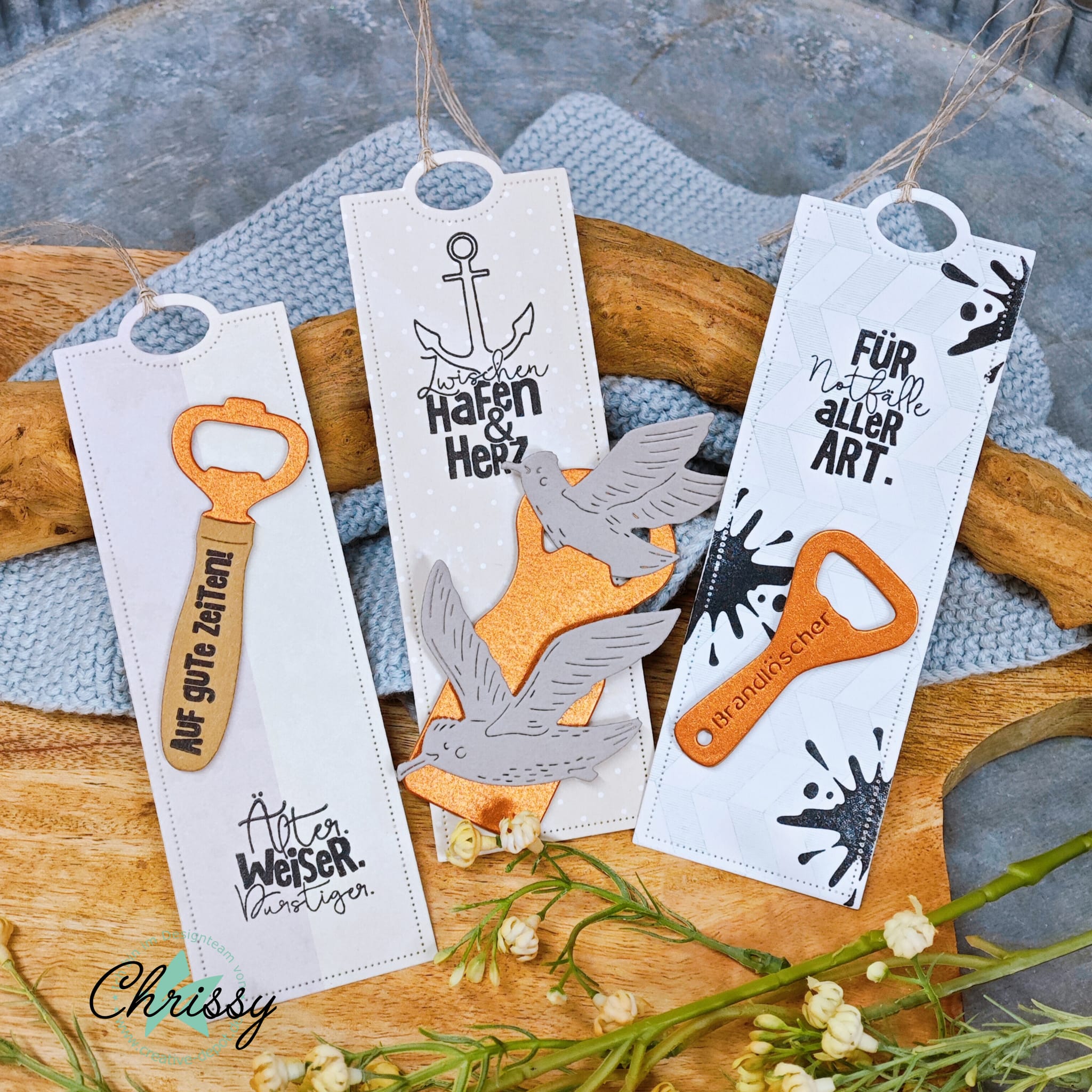 Die Sprüche aus dem Stempelset passen perfekt in die Öffner-Formen der Stanze – so entstehen im Handumdrehen abgestimmte Designs mit Wow-Effekt.