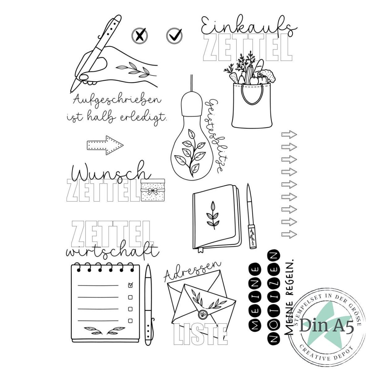 🖊️ Aufgeschrieben ist halb erledigt (ca. 6,0 x 6,7 cm) (ca. 6,3 x 7,0 cm)