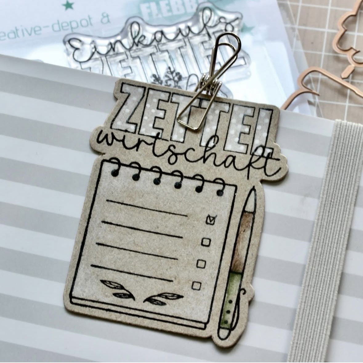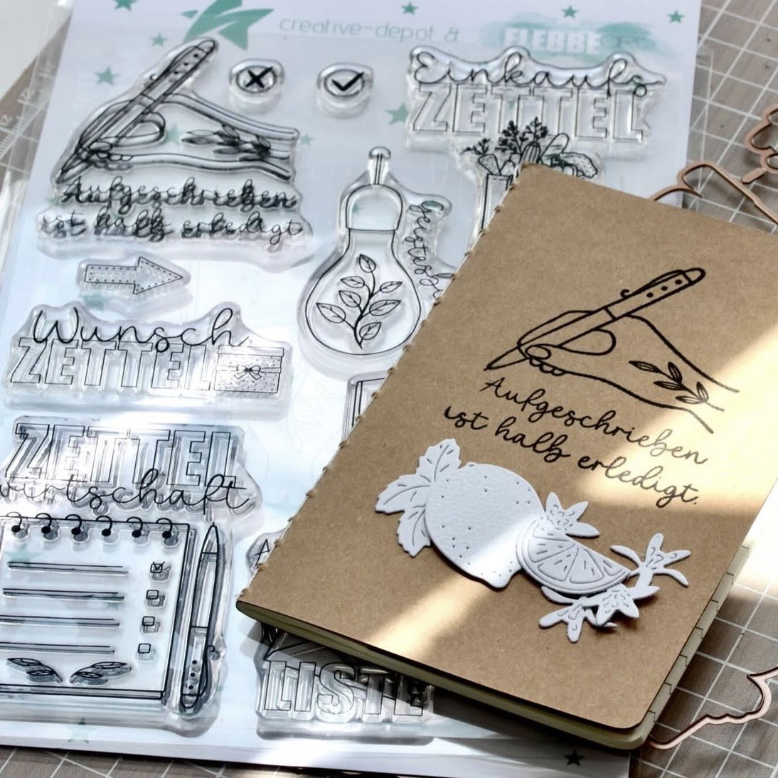 Das "Bundle - Stempelset & Stanzen - Designline - Notizblock" besteht