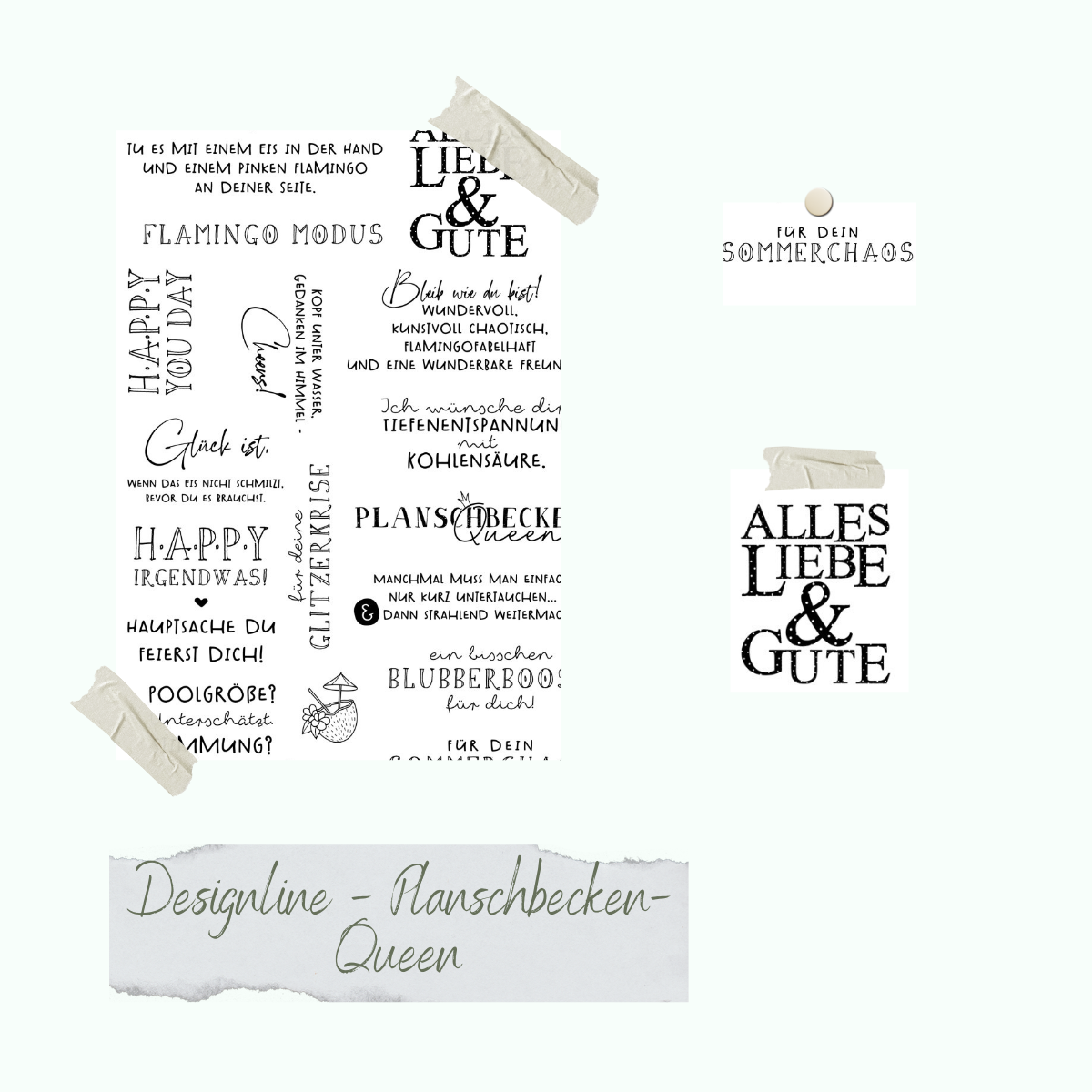Ein spritzig-lustiges Photopolymer-Stempelset mit 16 Stempeln auf einem großen A5 Sheet – perfekt für beste Freundinnen, Planschbecken-Profis und alle, die den Sommer mit Humor nehmen! 💦🍹👑