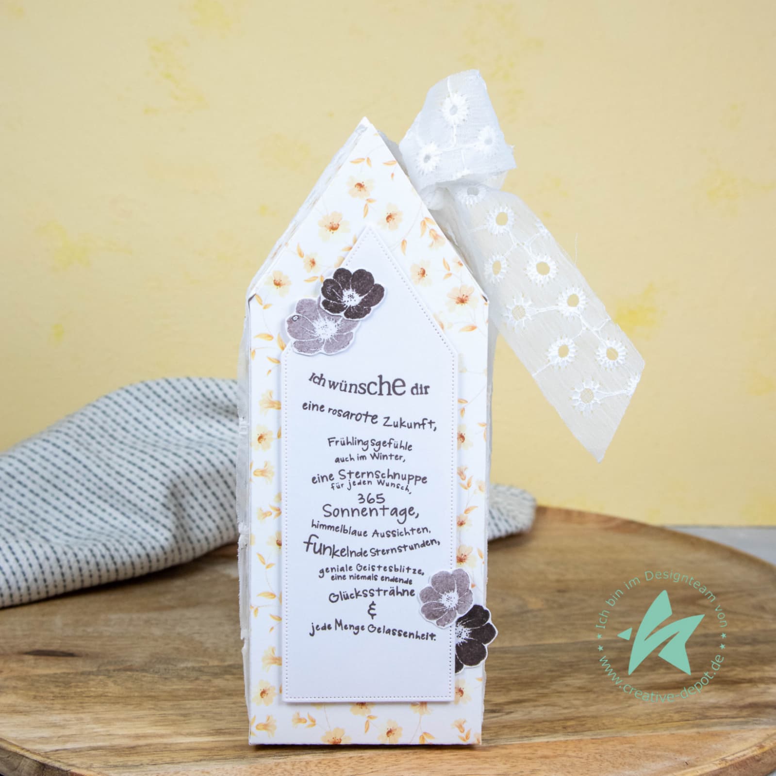 Ergänzt wird das florale Haus durch wunderschöne, poetische Texte, die Glück, Freude und Zuversicht transportieren:
