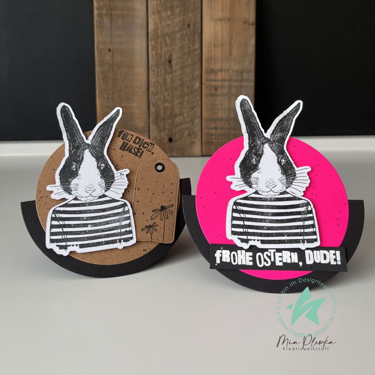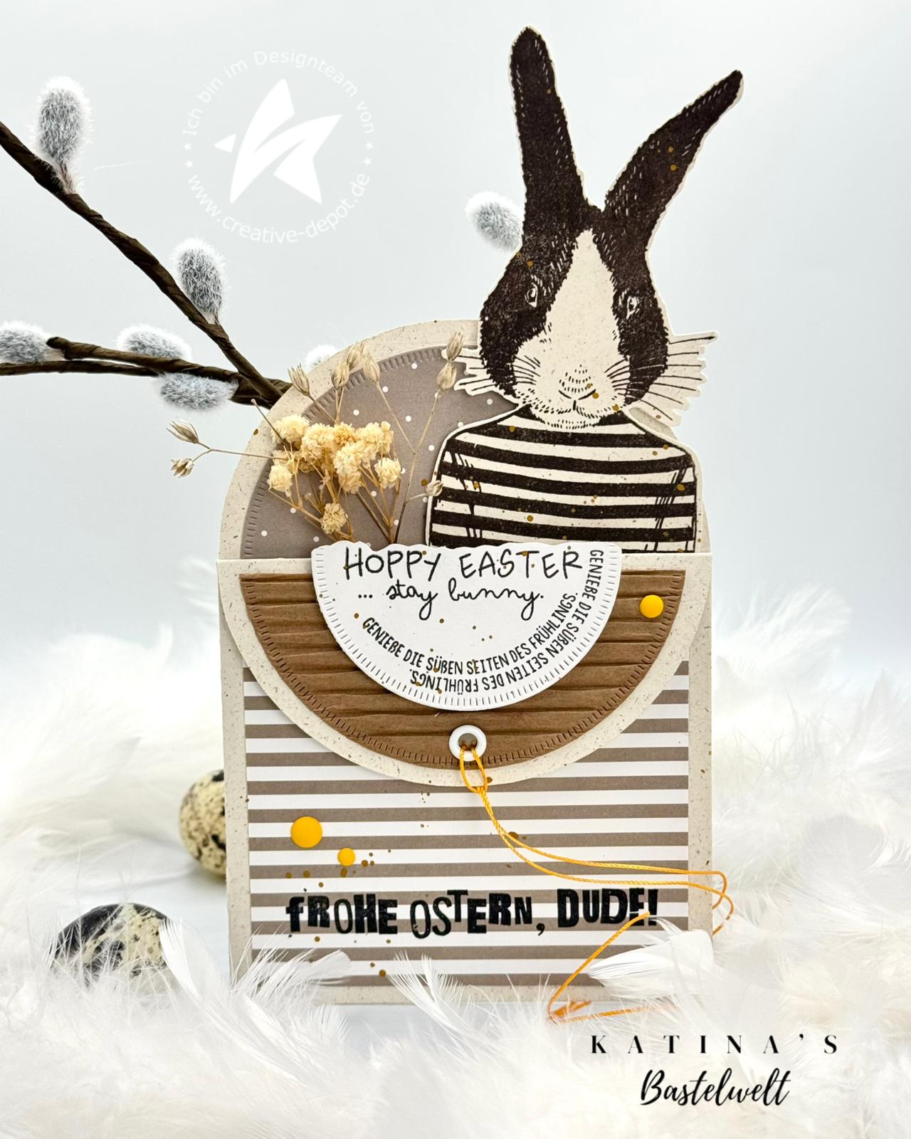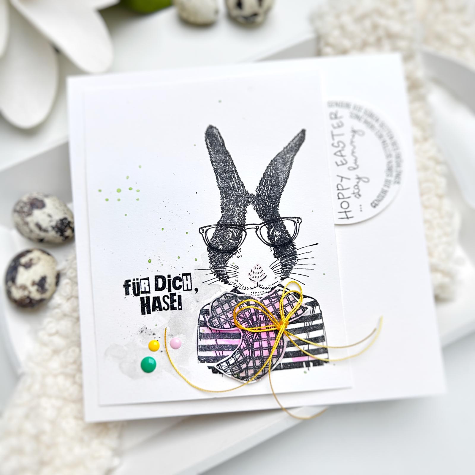 🐇 Der charakterstarke Hase im Ringelshirt, kombiniert mit coolen Accessoires wie Brille 👓 und Tuch 🧣, macht dieses Set zu einem echten Hingucker. Die Schriftzüge wie „Frohe Ostern, Dude!“ oder „Für dich, Hase!“ sorgen für Humor und Persönlichkeit ✨.