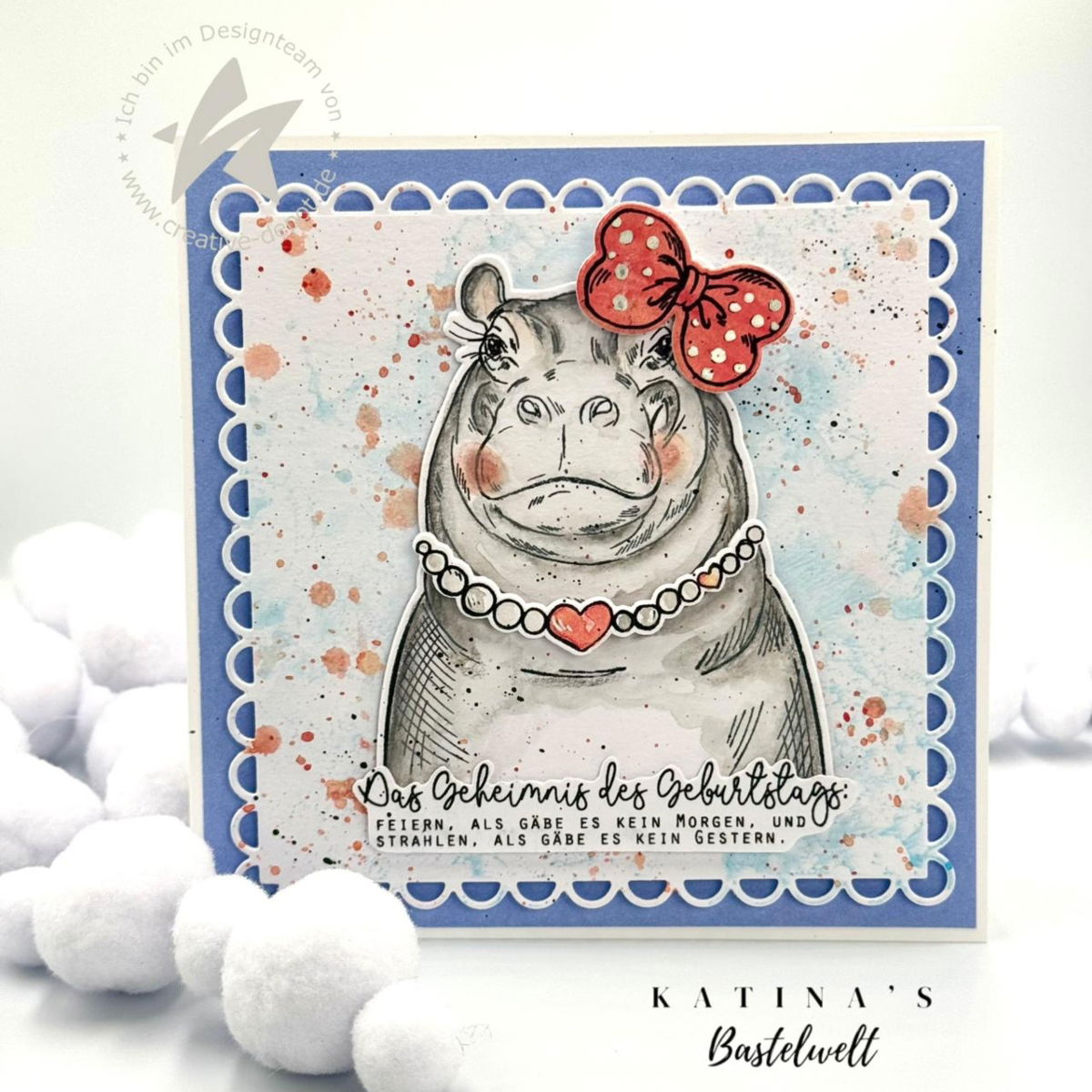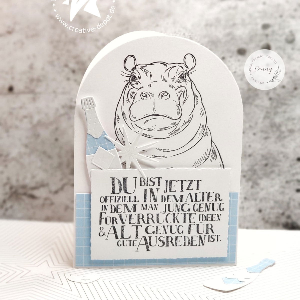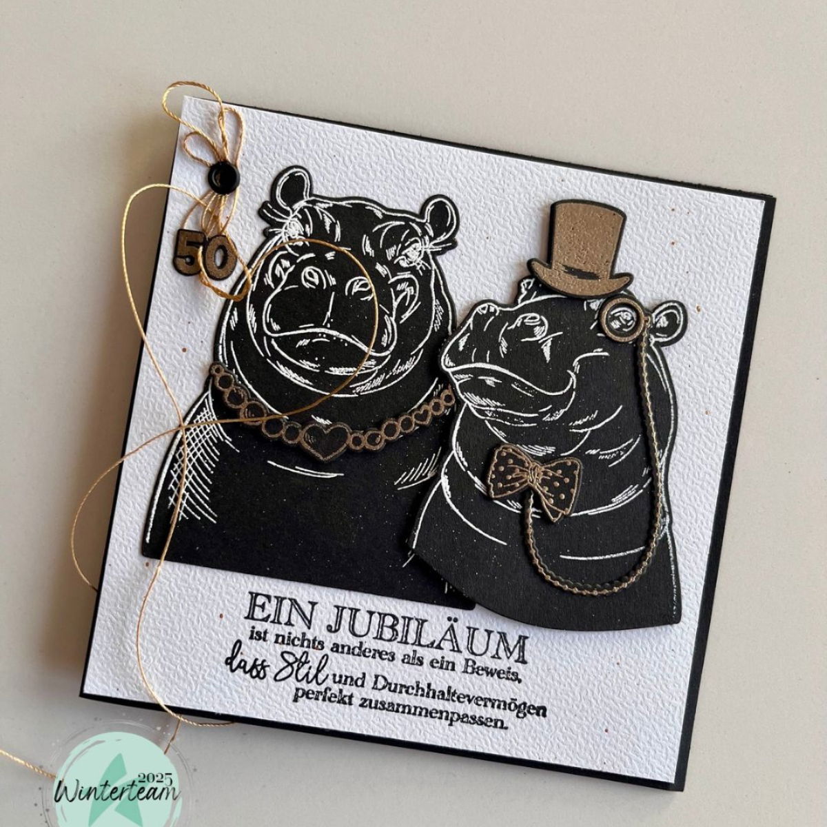 🦛 Mit dem Stempelset „Nilpferddame Nelli“ wird jedes Karten- und Kreativprojekt zu einem charmanten Highlight! Die elegante Nilpferddame mit ihrem sanften Blick verleiht Geburtstags- und Jubiläumskarten eine humorvolle, zugleich liebevoll-edle Note. Ergänzt wird sie durch eine Auswahl geschmackvoller Schriftstempel, die perfekt für besondere Anlässe geeignet sind.