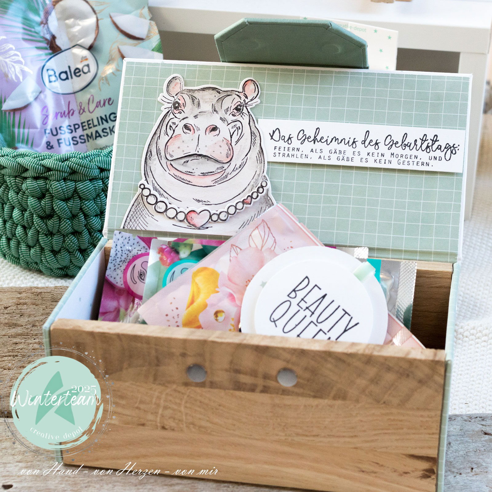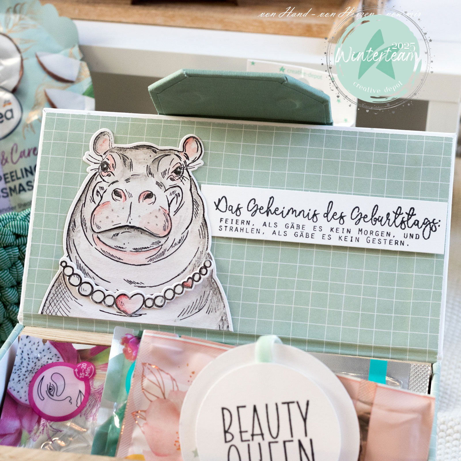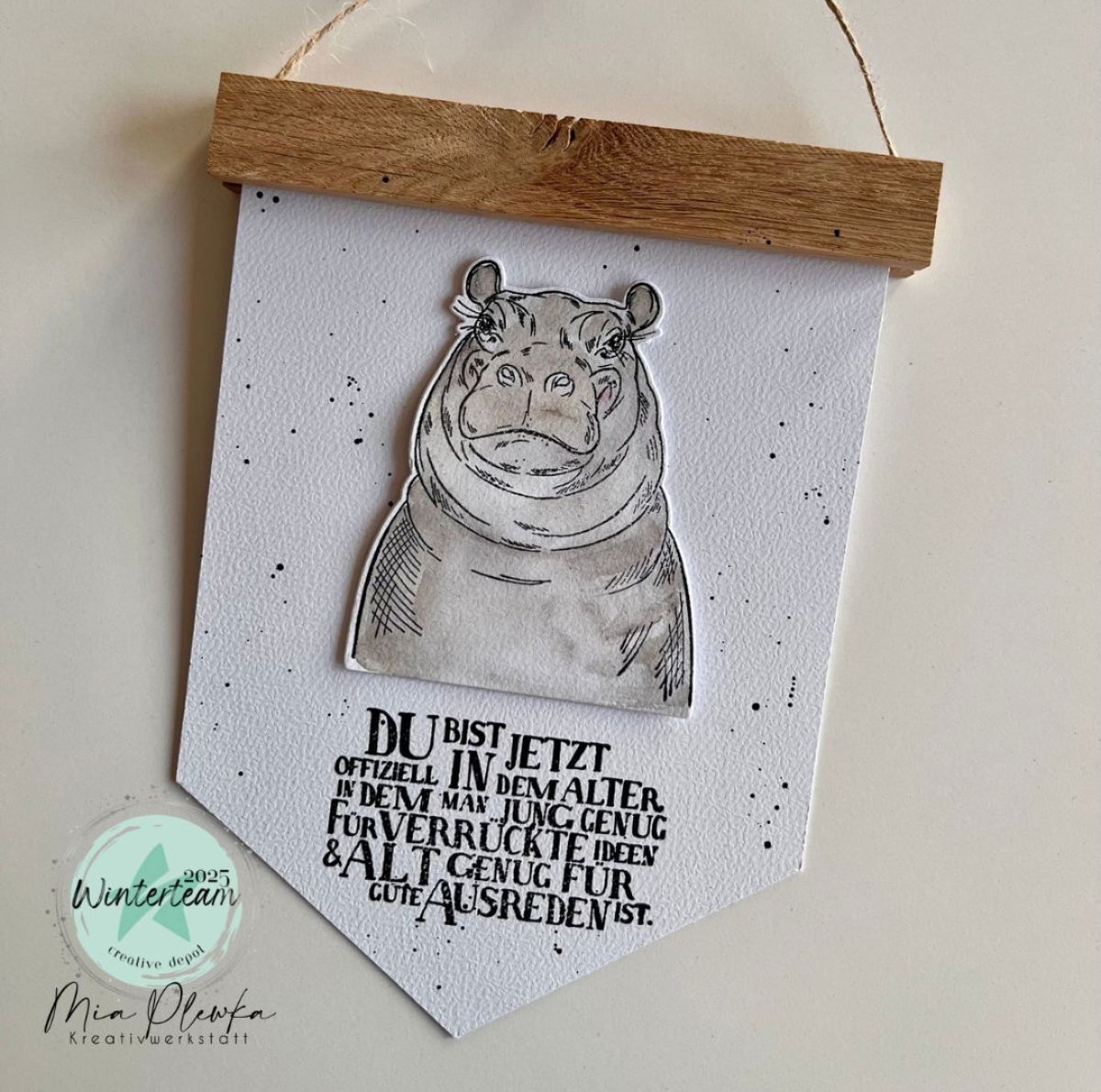 🦛 Mit dem Stempelset „Nilpferddame Nelli“ wird jedes Karten- und Kreativprojekt zu einem charmanten Highlight! Die elegante Nilpferddame mit ihrem sanften Blick verleiht Geburtstags- und Jubiläumskarten eine humorvolle, zugleich liebevoll-edle Note. Ergänzt wird sie durch eine Auswahl geschmackvoller Schriftstempel, die perfekt für besondere Anlässe geeignet sind.