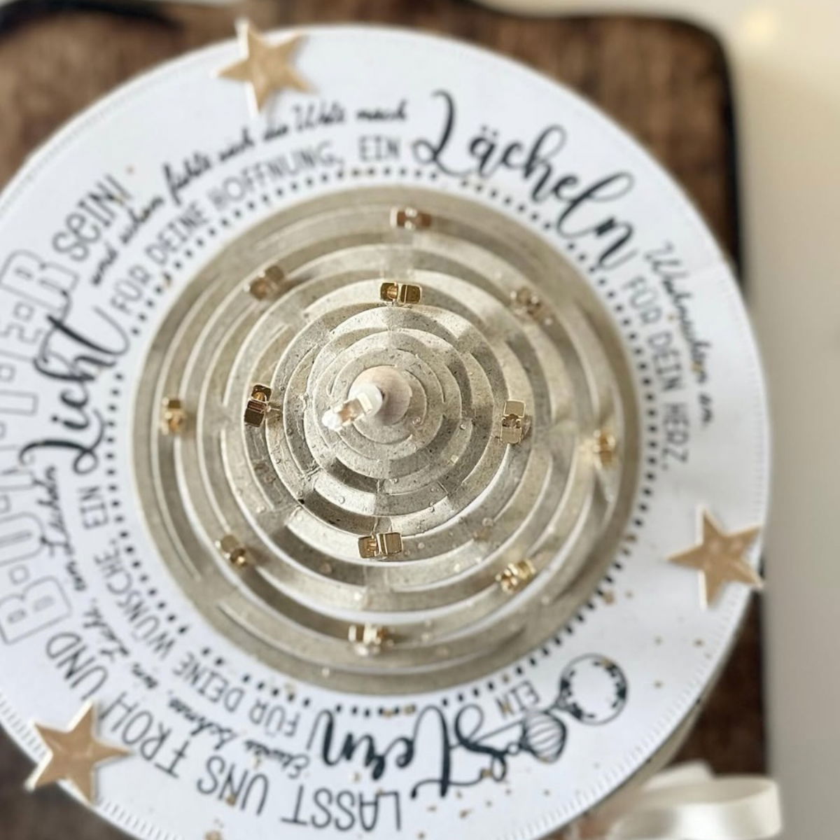 Die dekorativen Kreistexte legen sich wie ein Kranz um deine Motive – ideal, um die Pop-Up Tannenbaum Stanze in Szene zu setzen 🌲.