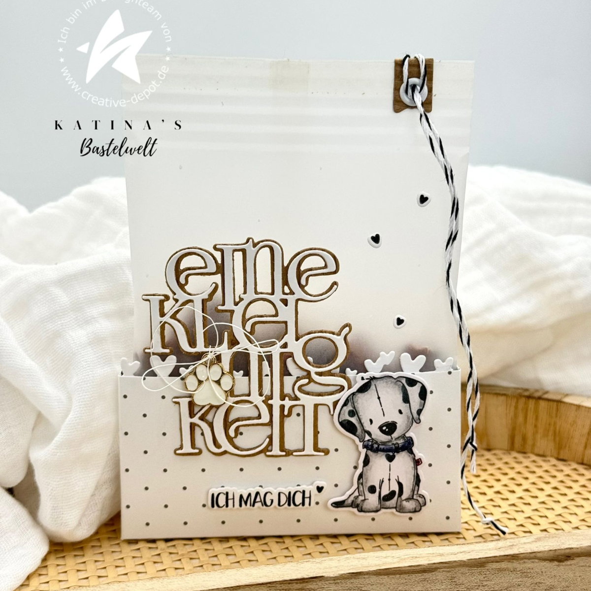 Mit dem Stempelset „Hundeliebe“ zauberst du im Handumdrehen tierisch süße Herzensbotschaften auf Karten, Verpackungen, Geschenkanhänger und Scrapbook-Seiten. Die niedlichen Hundemotive kombiniert mit gefühlvollen Sprüchen machen jedes DIY-Projekt zu einer echten Liebeserklärung auf vier Pfoten.