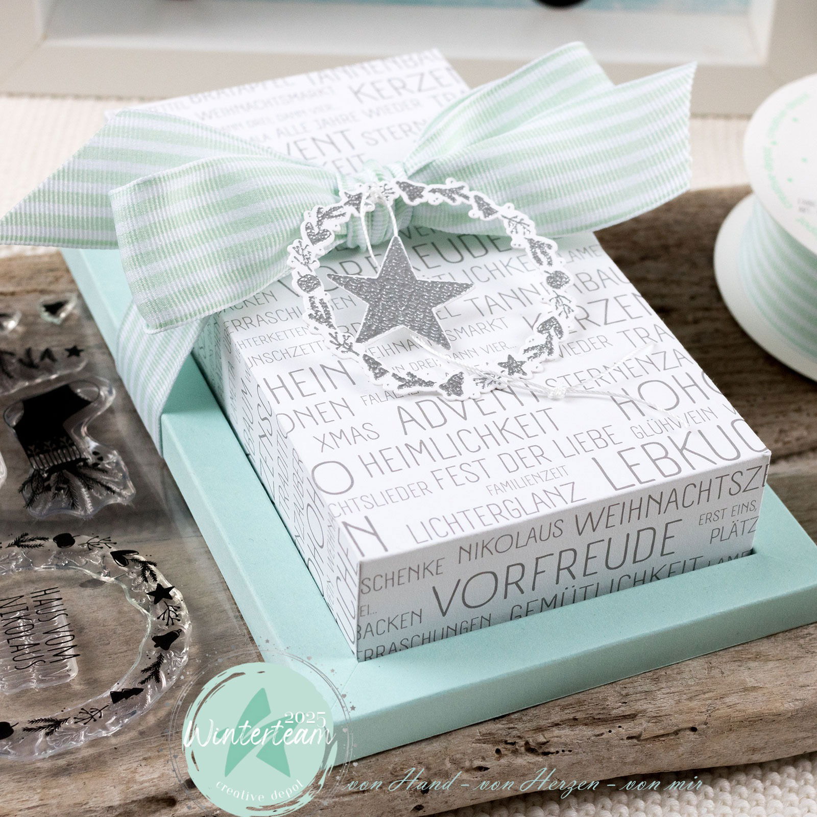 🎄✨🎅Mit dem Stempelset zauberst du festliche Stimmung auf Karten, Geschenkverpackungen und Winter-Deko. Die liebevoll gestalteten Motive und Sprüche rund um Weihnachten, Nikolaus und den Jahreswechsel lassen sich vielseitig kombinieren – für kreative Projekte voller Herz und Magie.