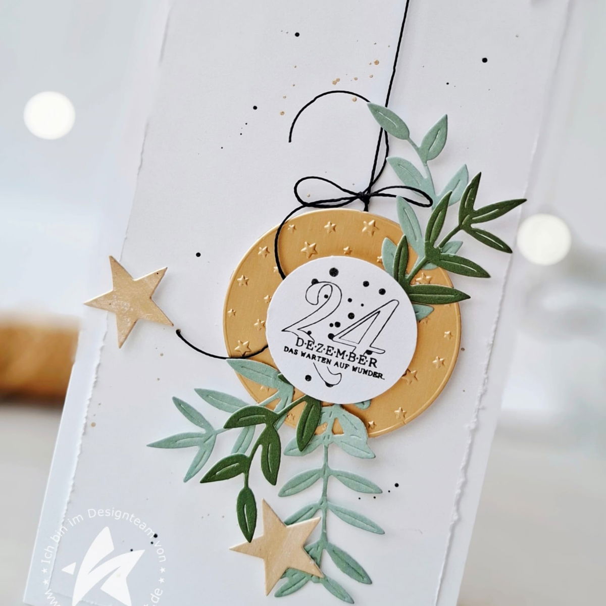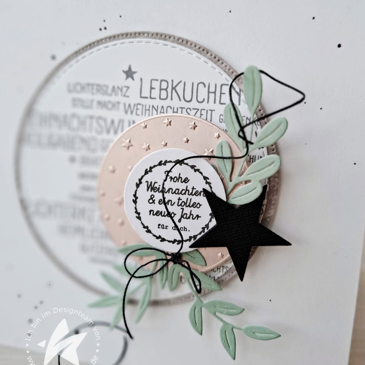 Mit nur einem Durchgang durch die Stanz- und Prägemaschine entstehen gleichzeitig ausgestanzte und fein geprägte Kreise, die du danach direkt bestempeln oder weiterverarbeiten kannst.