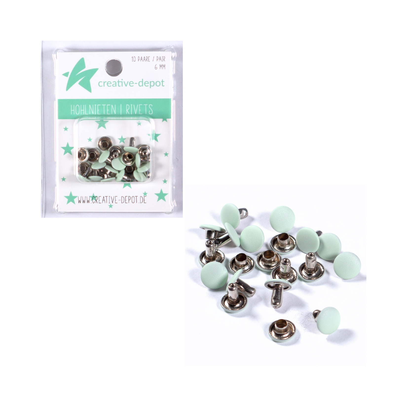 Produktinformationen "Klemmmechaniken - Babymint - Matt - Buchbindeliebe - 3 Stück inkl. Nieten"