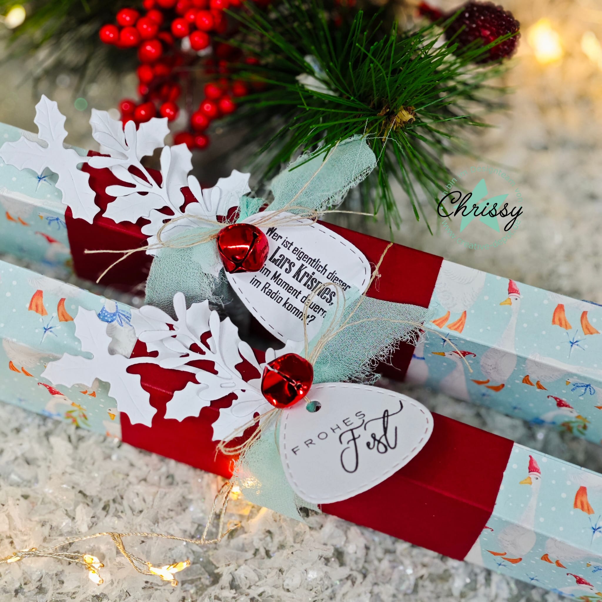 - Die Glöckchen klingen, der Glühwein war heif, Funge verbrannt - was für ein Feiff. (ca. 3,3 x 1,5 cm)