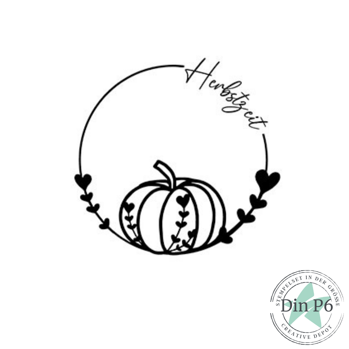 Ein liebevoll gestalteter Kreis mit dem Schriftzug Herbstzeit, dekoriert mit einem Kürbis und feinen Zweigen, verleiht deinen Projekten einen warmen, gemütlichen Look. 🌾🍁