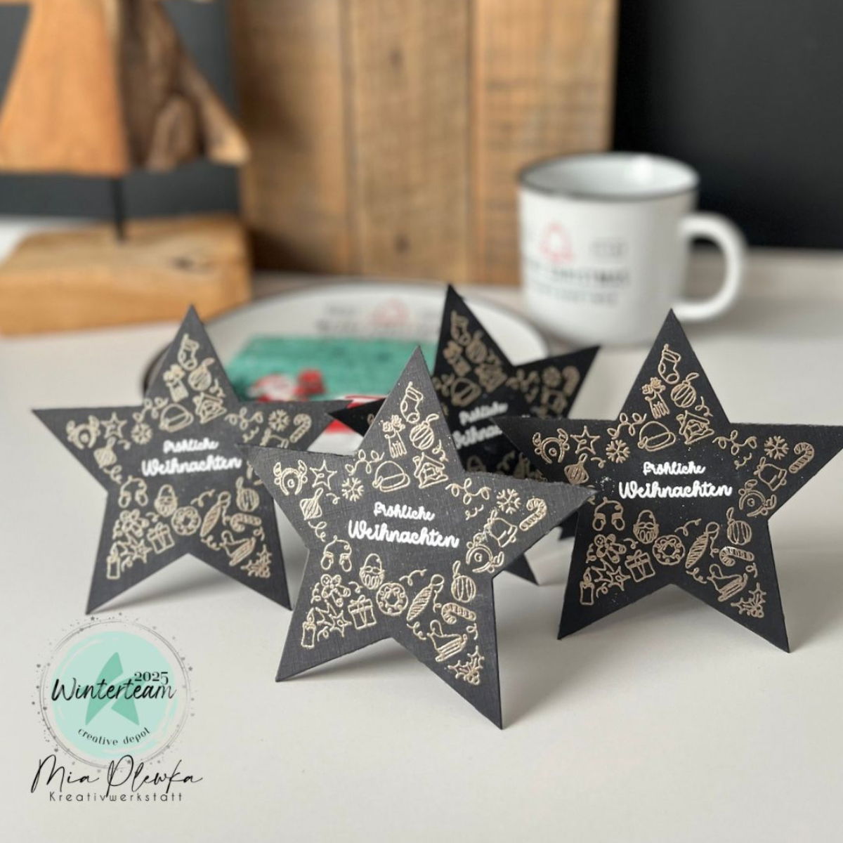 Neben dem großen Stern (ca. 8,8 x 8,4 cm) findest du eine zauberhafte Auswahl an Schriftzügen ✍️, die Wärme und Freude vermitteln: