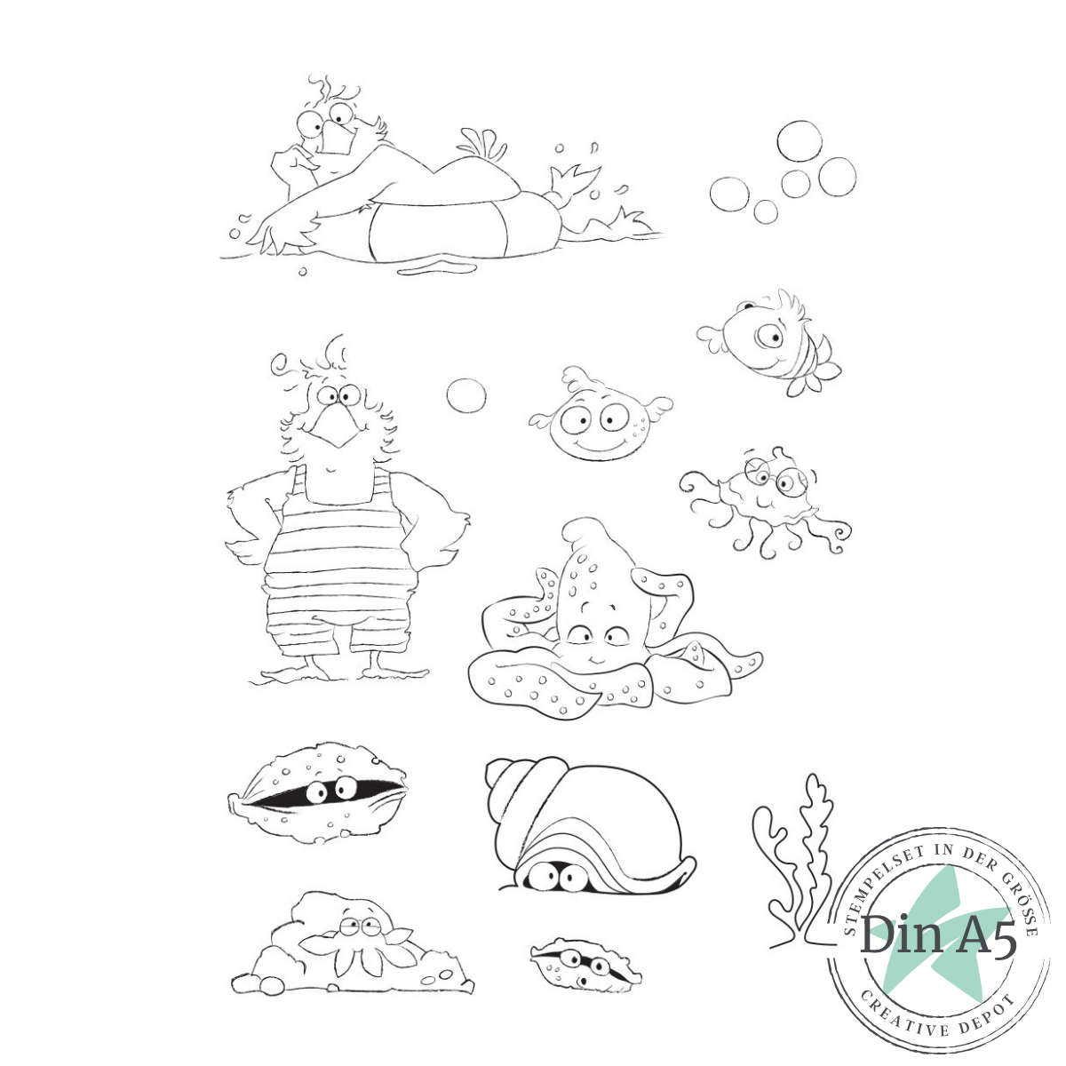 Mit ihren witzigen Posen und liebevollen Details bringen die Motive Charme, Spaß und Leichtigkeit in jedes Projekt. Von der planschenden Möwe im Schwimmring 🏖️ über den neugierigen Tintenfisch 🐙 bis hin zu den frechen Muscheln 🐚 – dieses Set steckt voller Leben und Sommerfreude!