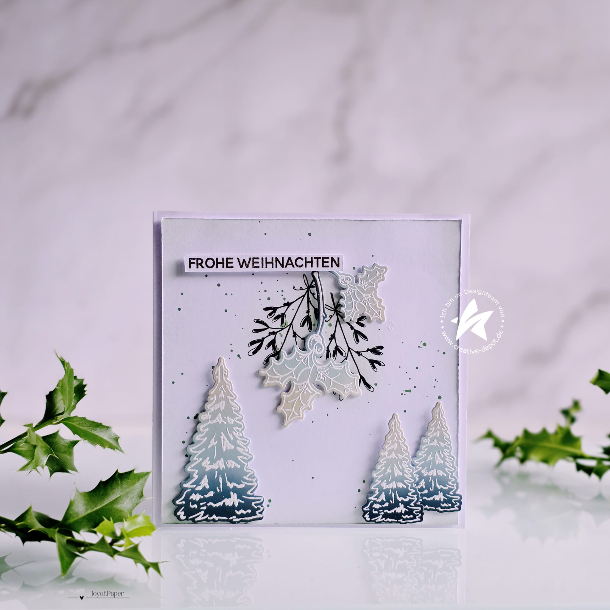 Dieses vielseitige Stempelset bringt die Magie der Winter- und Weihnachtszeit direkt in deine Bastelprojekte. Mit handgezeichneten Tannenbäumen, detailverliebten Ilex-Zweigen (Stechpalme) und zarten Sternenakzenten eignet sich das Set perfekt für eine Vielzahl kreativer Anwendungen – von Weihnachtskarten über Geschenkanhänger bis hin zu winterlichen Journalingseiten.