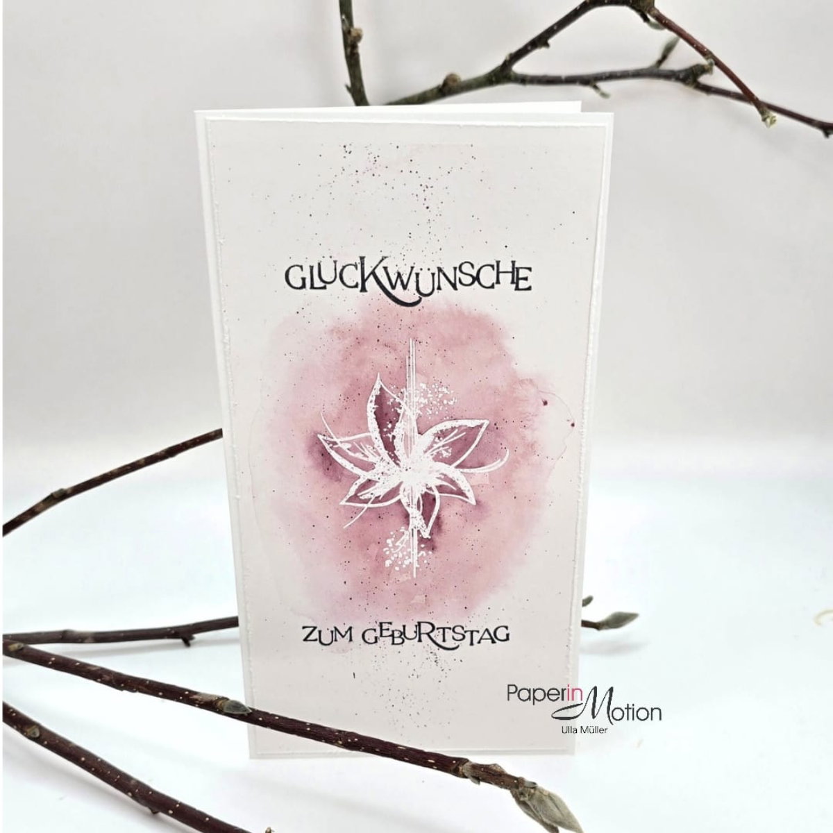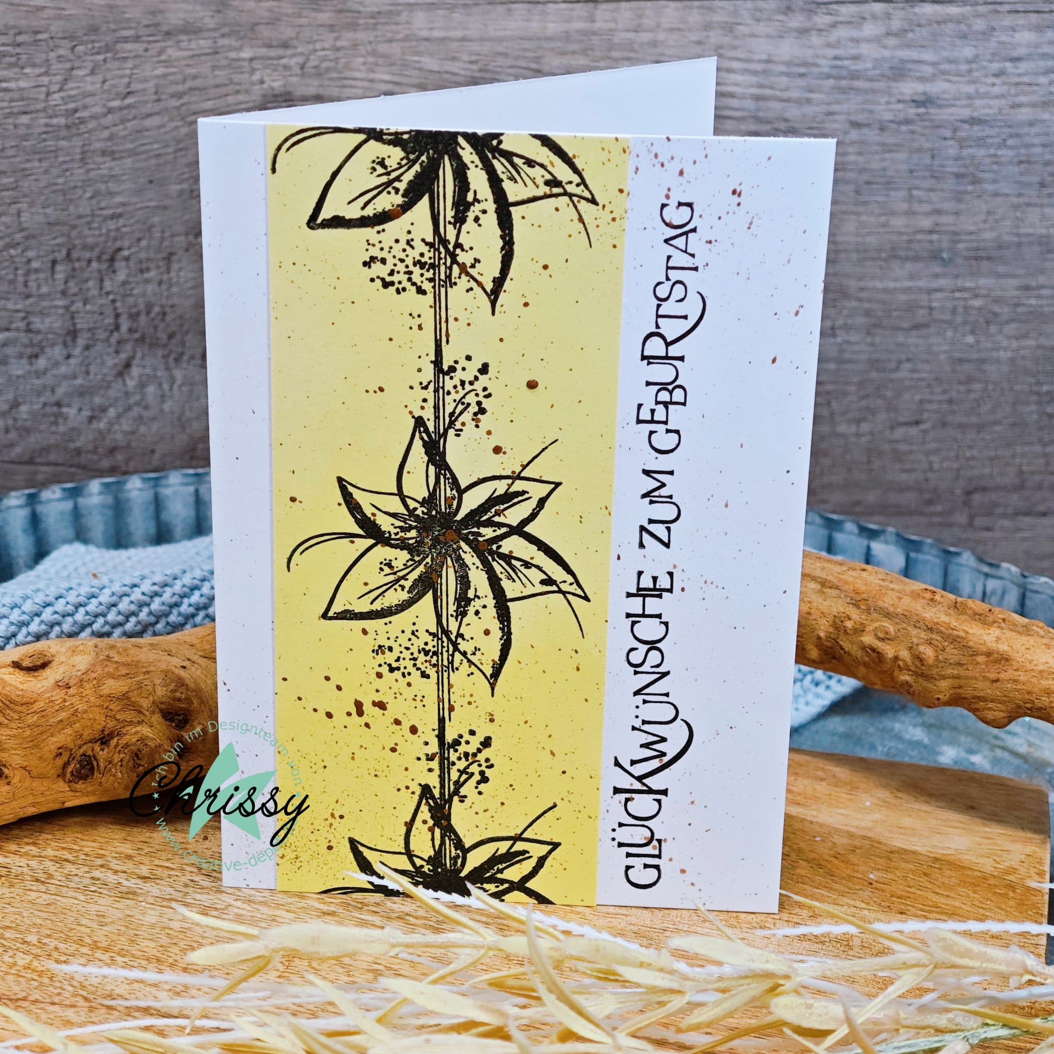 Mit dem Stempelset „Wir gratulieren“ gestaltest du besondere Karten für besondere Anlässe. Die Kombination aus ausdrucksstarker Blütenillustration im Skizzenstil und modernen Schriftzügen macht jede Geburtstagskarte zu einem echten Hingucker.