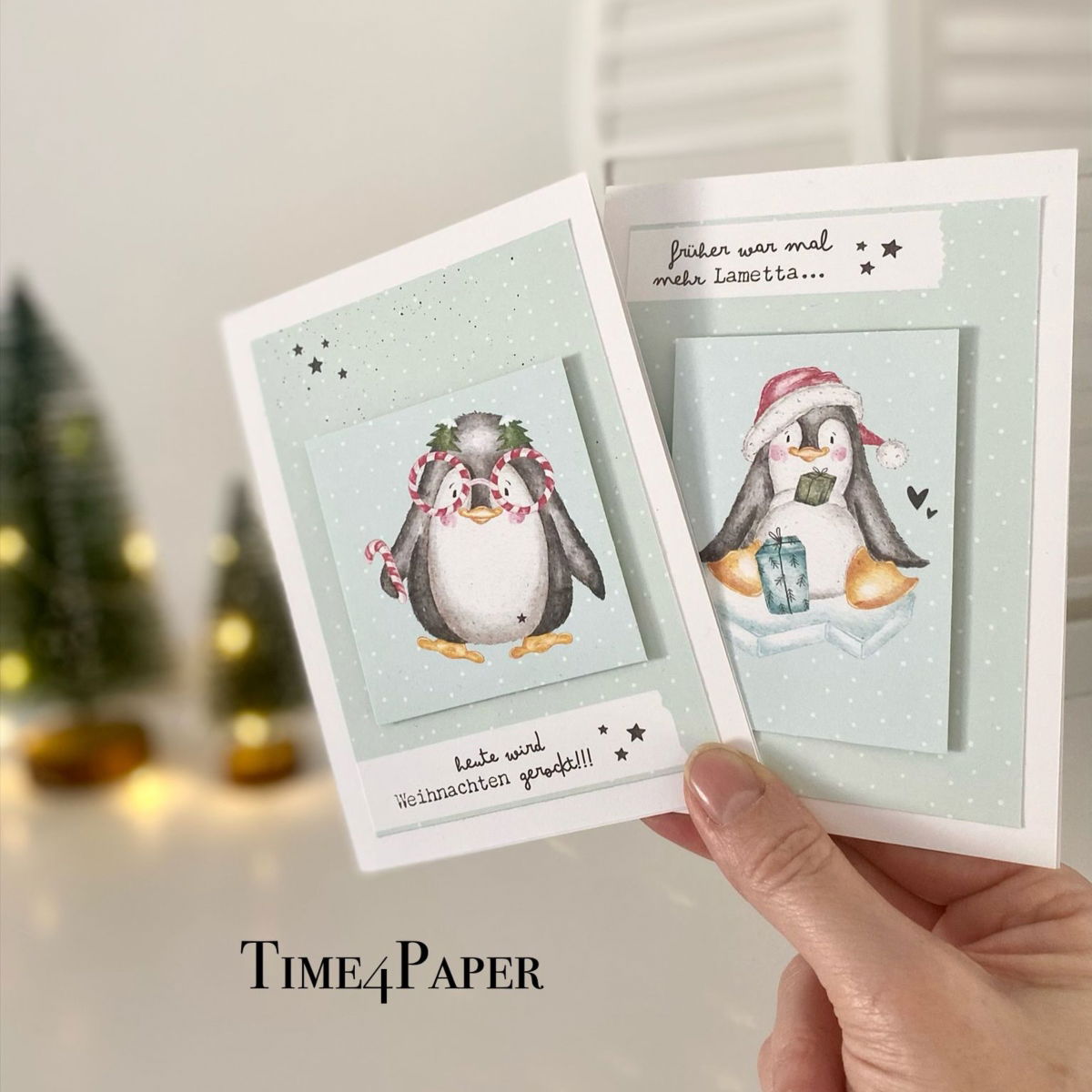 Designpapier - Weihnachtspinguine - Doppelseitig bedruckt