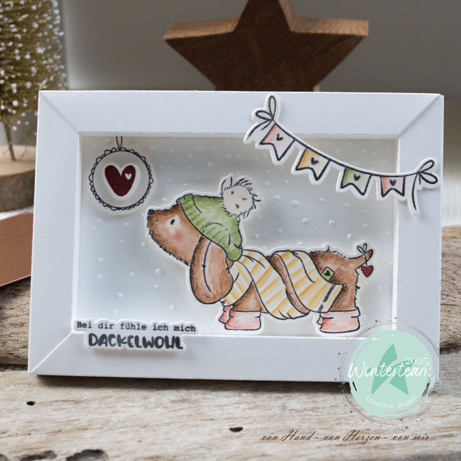 🐶 Das Bundle „Dackelwohl“ von Emmapünktchen ist die perfekte Wahl für alle, die herzige Tiermotive, warme Botschaften und eine Extraportion Humor lieben. Mit seinem charmanten Dackel im gemütlichen Winter-Outfit, liebevollen Akzenten und passenden Sprüchen zaubert dieses Set sofort ein Lächeln auf jede Karte – ideal für Freundschaftsgrüße, Winterpost, Valentinstagskarten oder einfach für Herzmenschen.