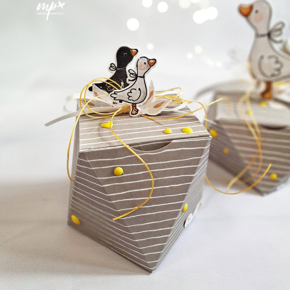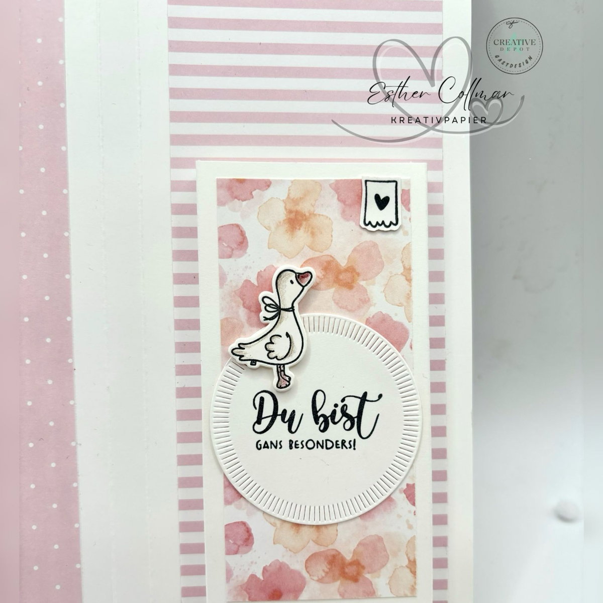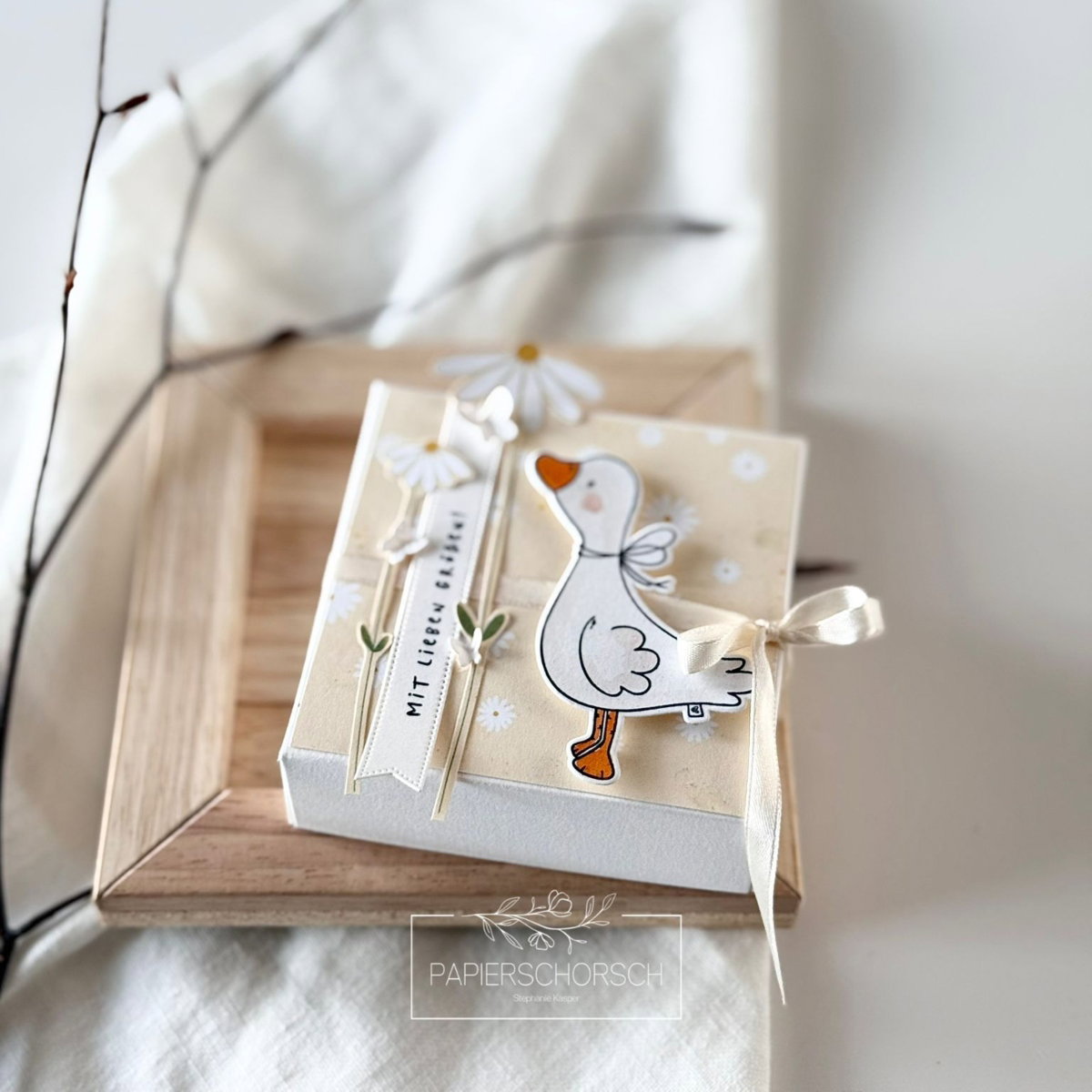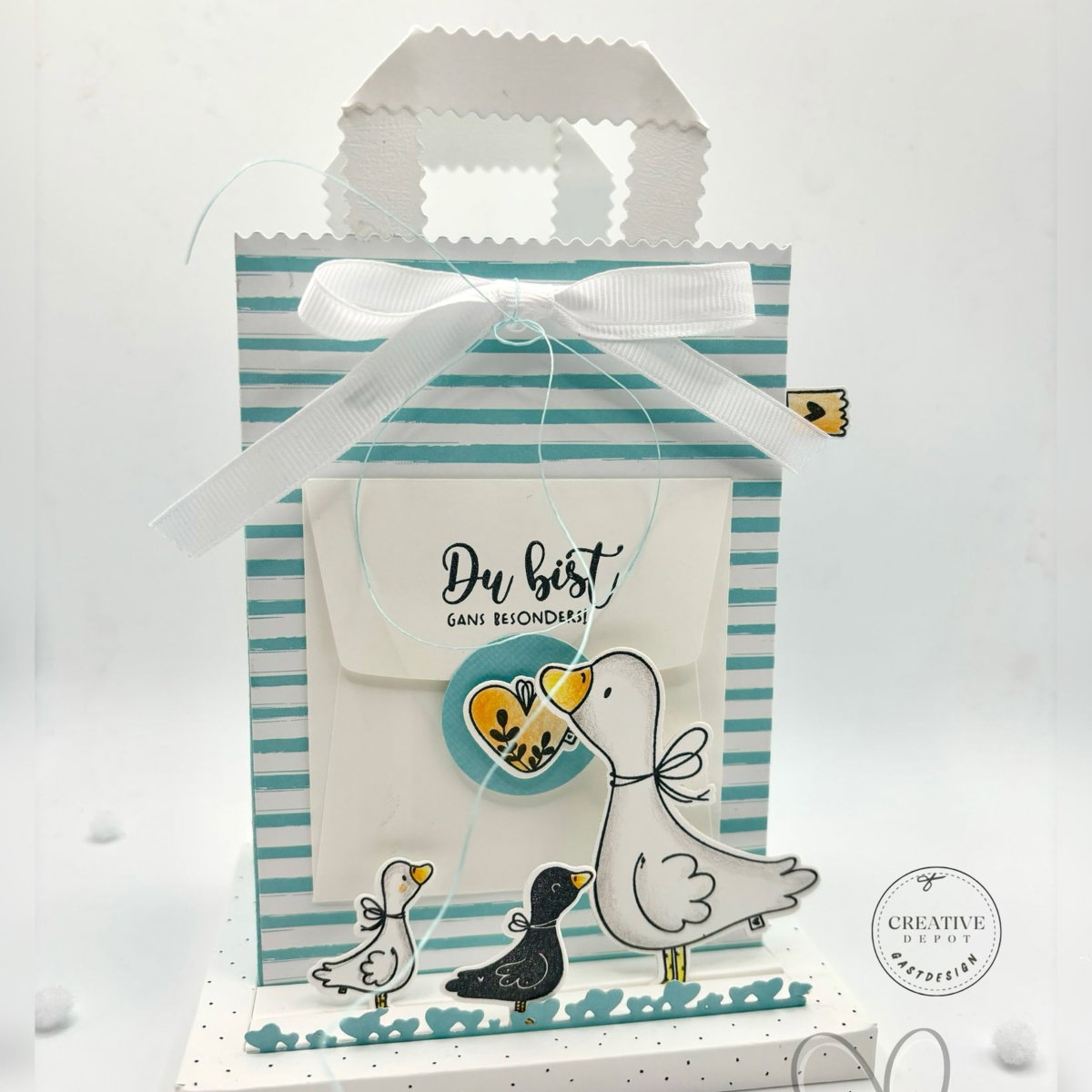 Coloriere deine Gänse in zarten Aquarelltönen und setze sie mit 3D-Klebepads auf deine Karte – so entsteht im Handumdrehen ein lebendiger, liebevoller Look mit besonderem Charme.