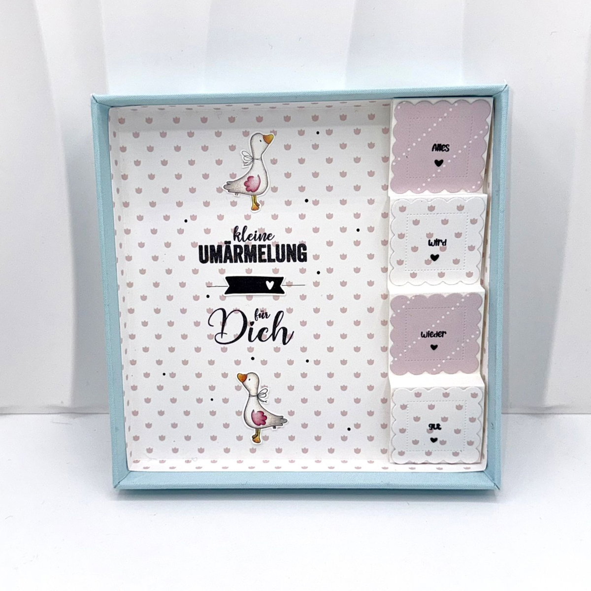 Die niedlichen Gänsemotive und herzerwärmenden Sprüche wie „Heile, heile Gänschen“ und „Alles wird wieder gut“ lassen sich dank der passenden Stanzen präzise ausstanzen und wunderschön in Szene setzen – ideal für Karten mit Dimension, Geschenkverpackungen oder kleine Aufmerksamkeiten mit Herz.