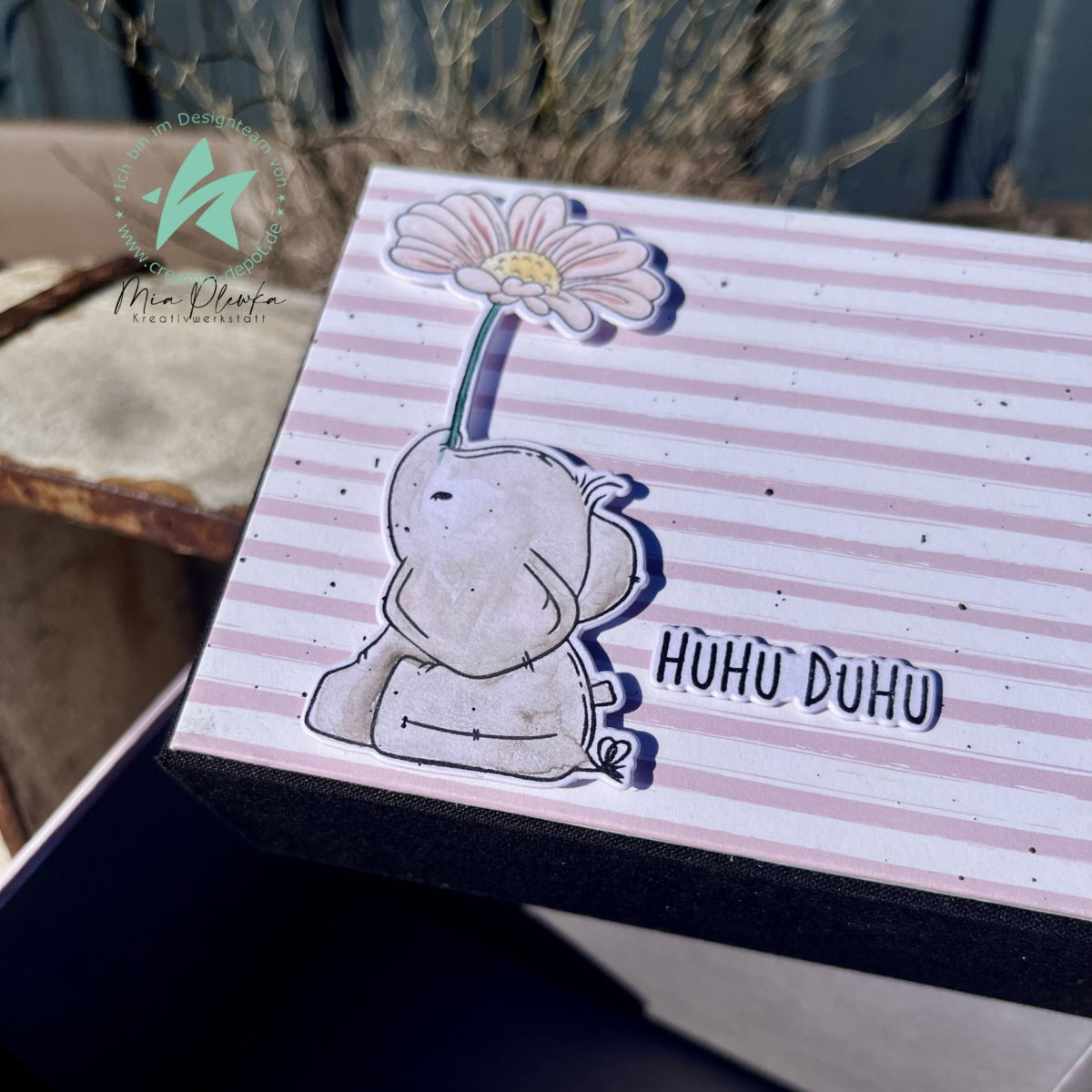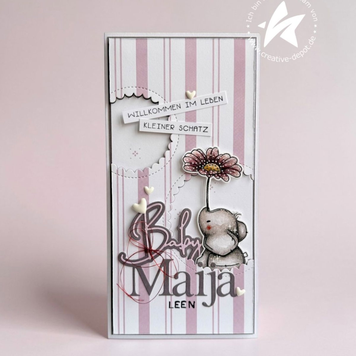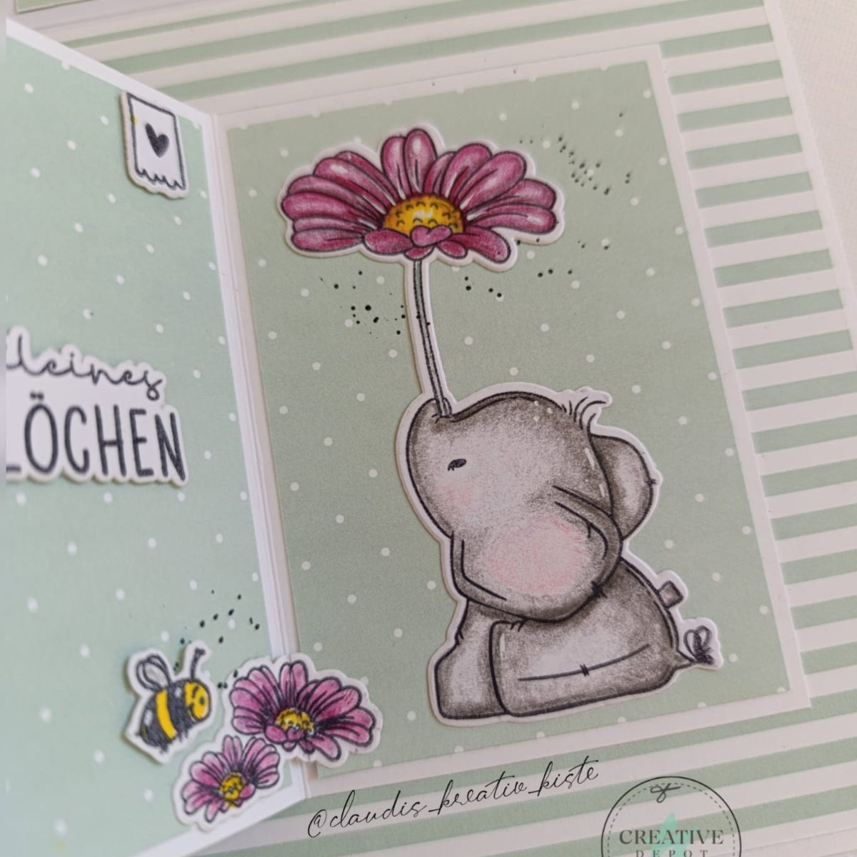 Die zarten Gänseblümchen, der niedliche Elefant und die handgeschrieben wirkenden Texte verleihen Karten, Geschenkverpackungen und kreativer Post einen besonders fröhlichen Charakter.