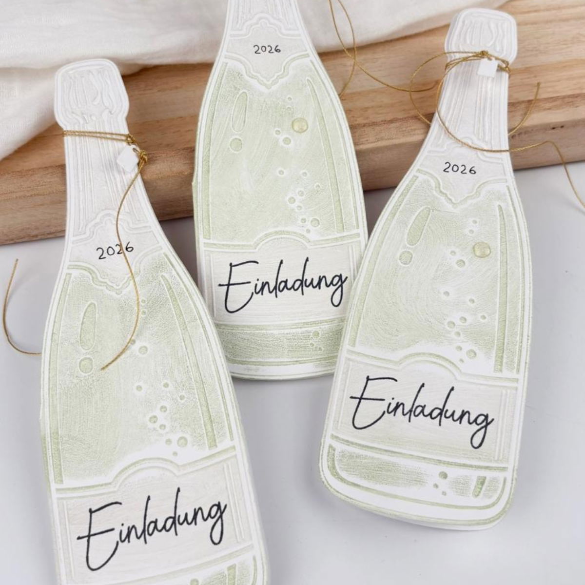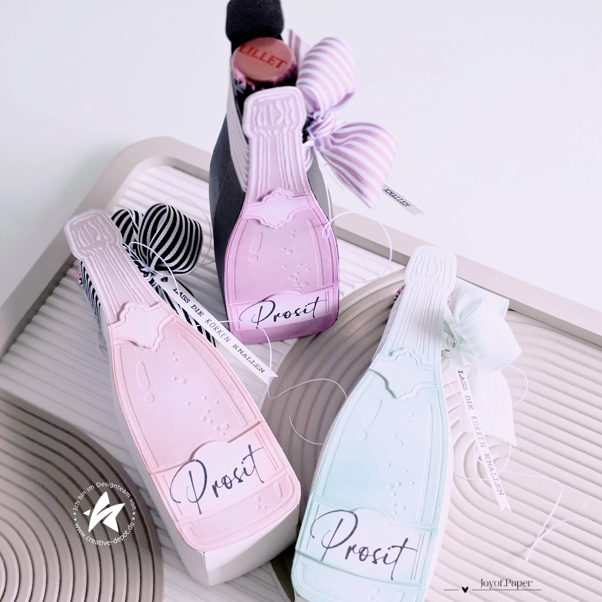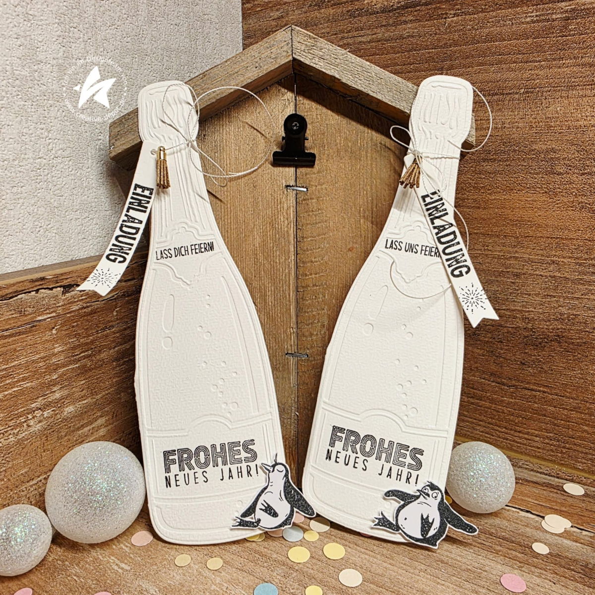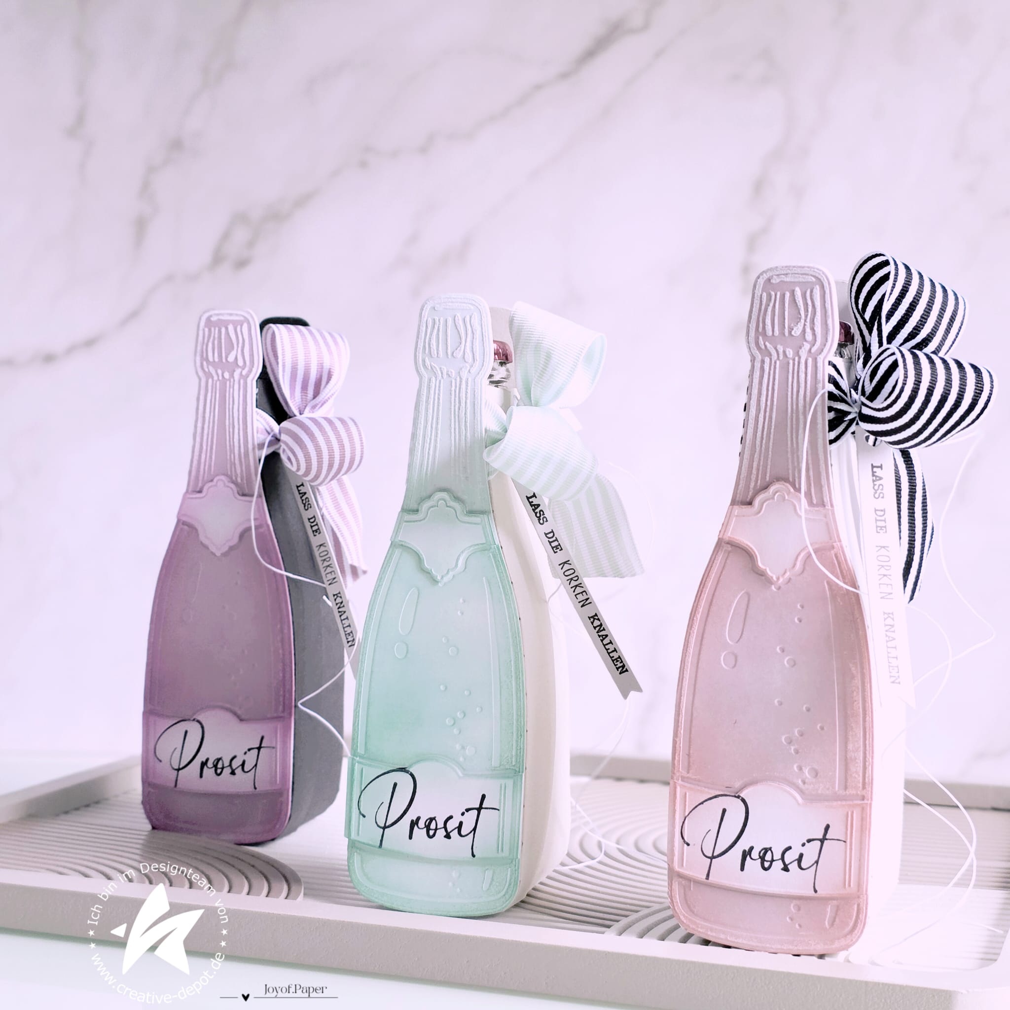 Cut & Emboss Folder - Klappkarte - Sektflasche 15 x 20 cm
