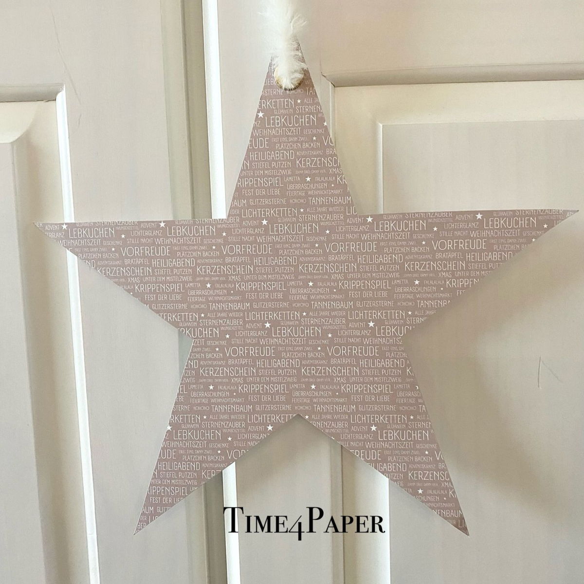 Designpapier - Scrapliebe - Dezembertagebuch - Wörterstern - Taupe - Doppelseitig bedruckt