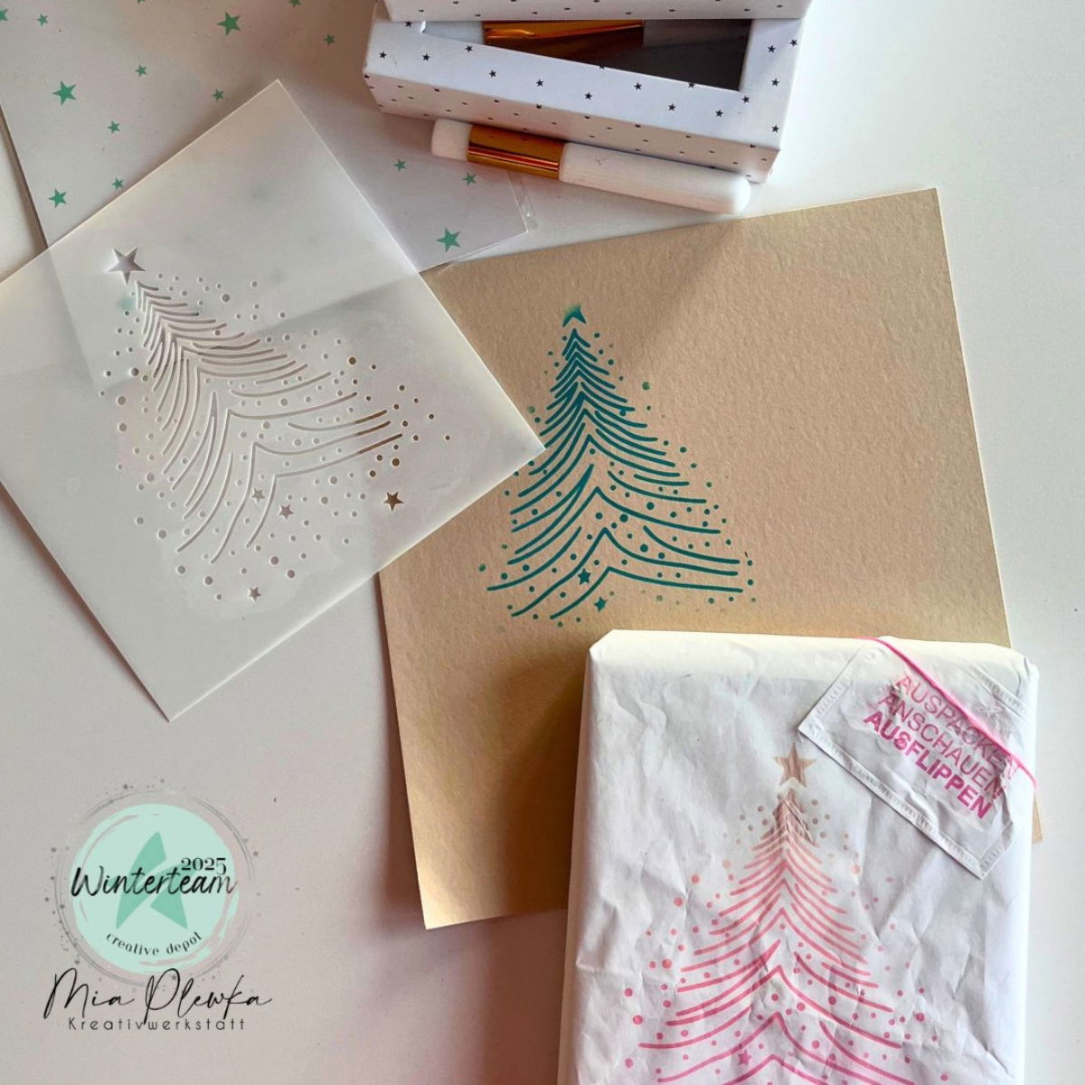 Mit der Schablone – Tannenbaum entsteht im Nu ein wunderschönes festliches Motiv 🎄💫.