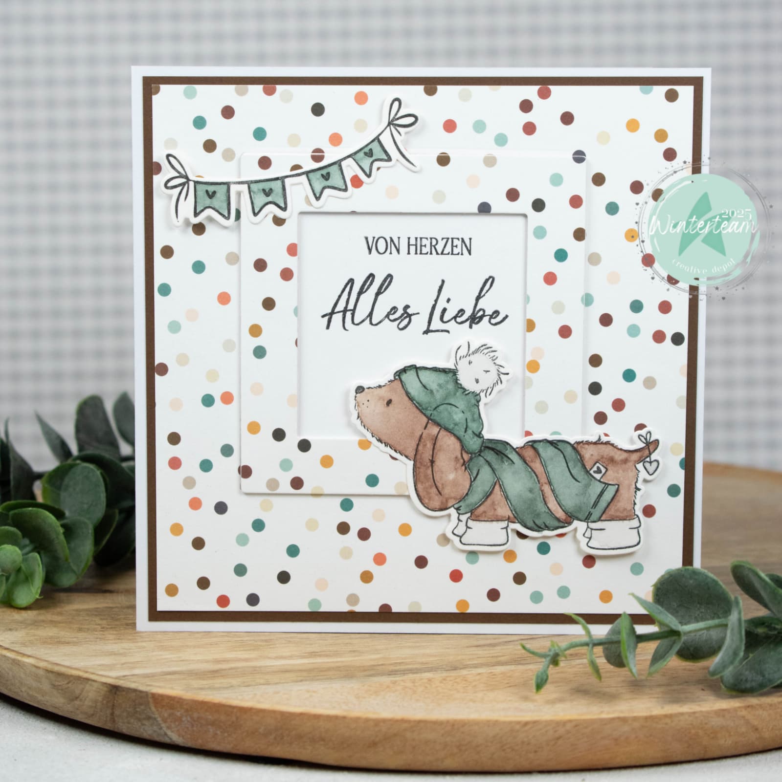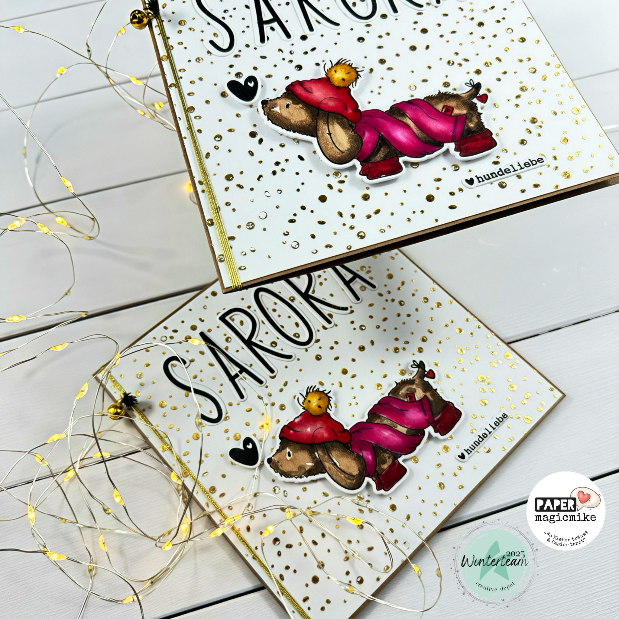 🐶 Das Stempelset „Dackelwohl“ von Emmapünktchen ist die perfekte Wahl für alle, die herzige Tiermotive, warme Botschaften und eine Extraportion Humor lieben. Mit seinem charmanten Dackel im gemütlichen Winter-Outfit, liebevollen Akzenten und passenden Sprüchen zaubert dieses Set sofort ein Lächeln auf jede Karte – ideal für Freundschaftsgrüße, Winterpost, Valentinstagskarten oder einfach für Herzmenschen.