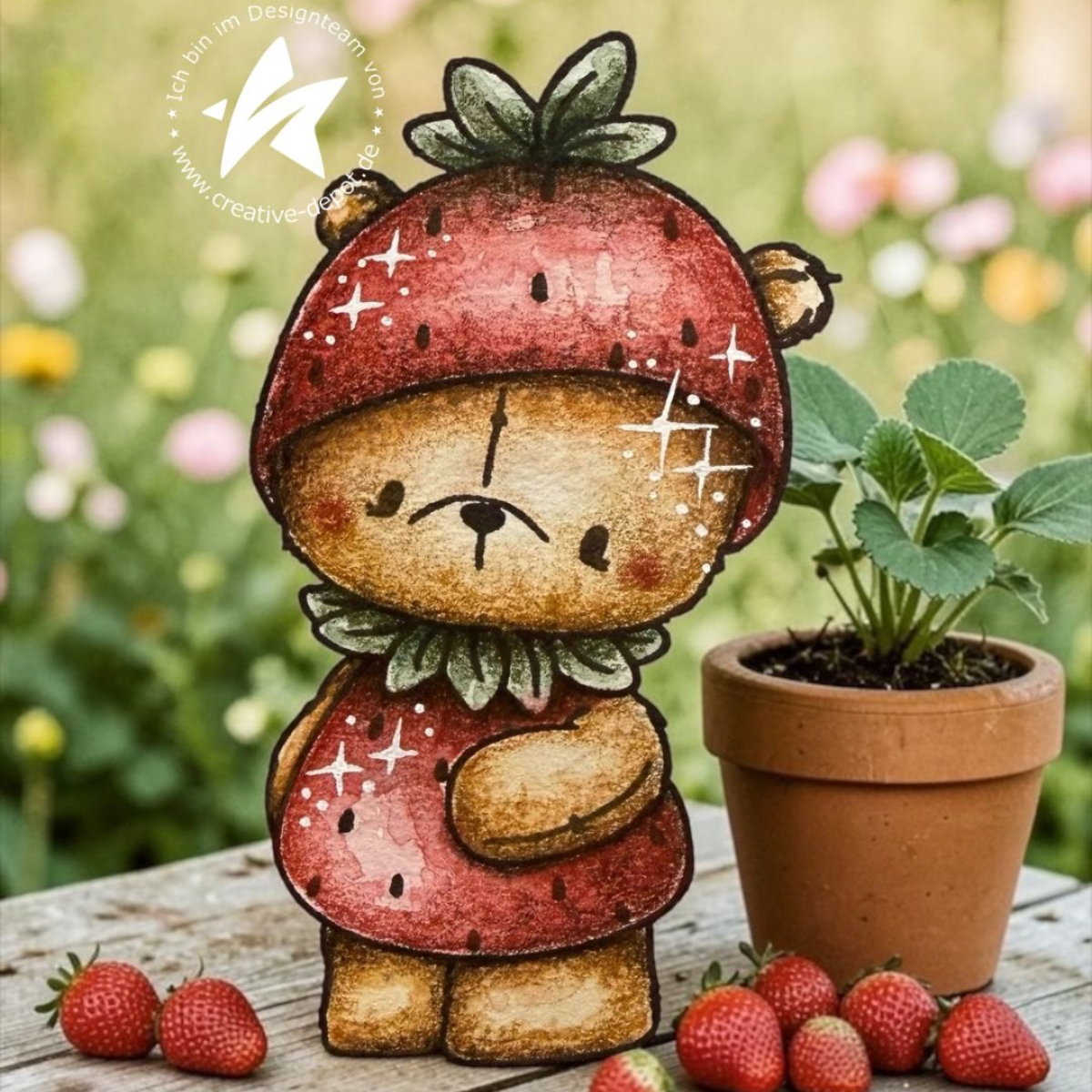 🐻 Süßes Hauptmotiv: Der beliebte Erdbär im Erdbeerlook