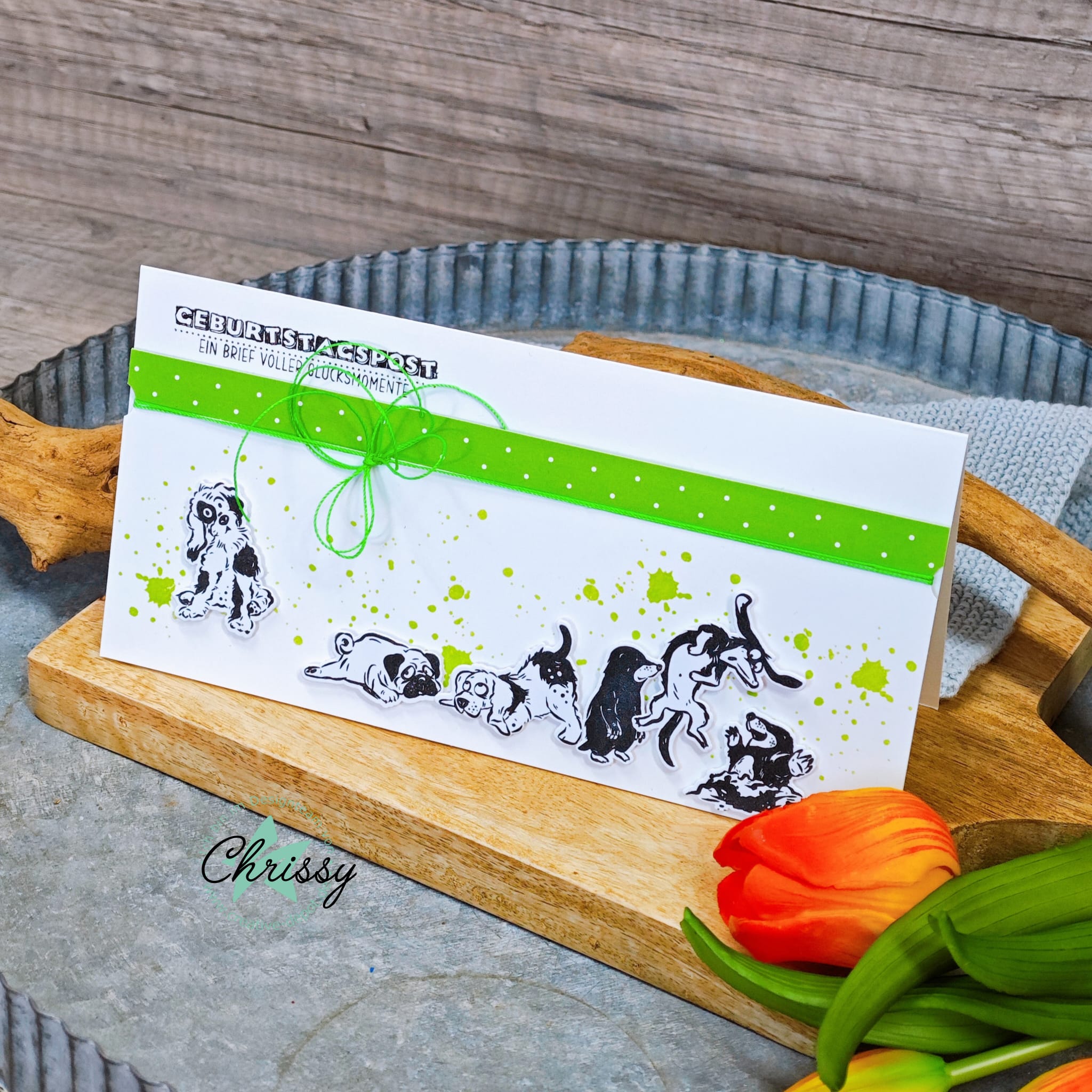 Designpapier - Basic - Apfelgrün - Pünktchen + Herzchen - Doppelseitig bedruckt