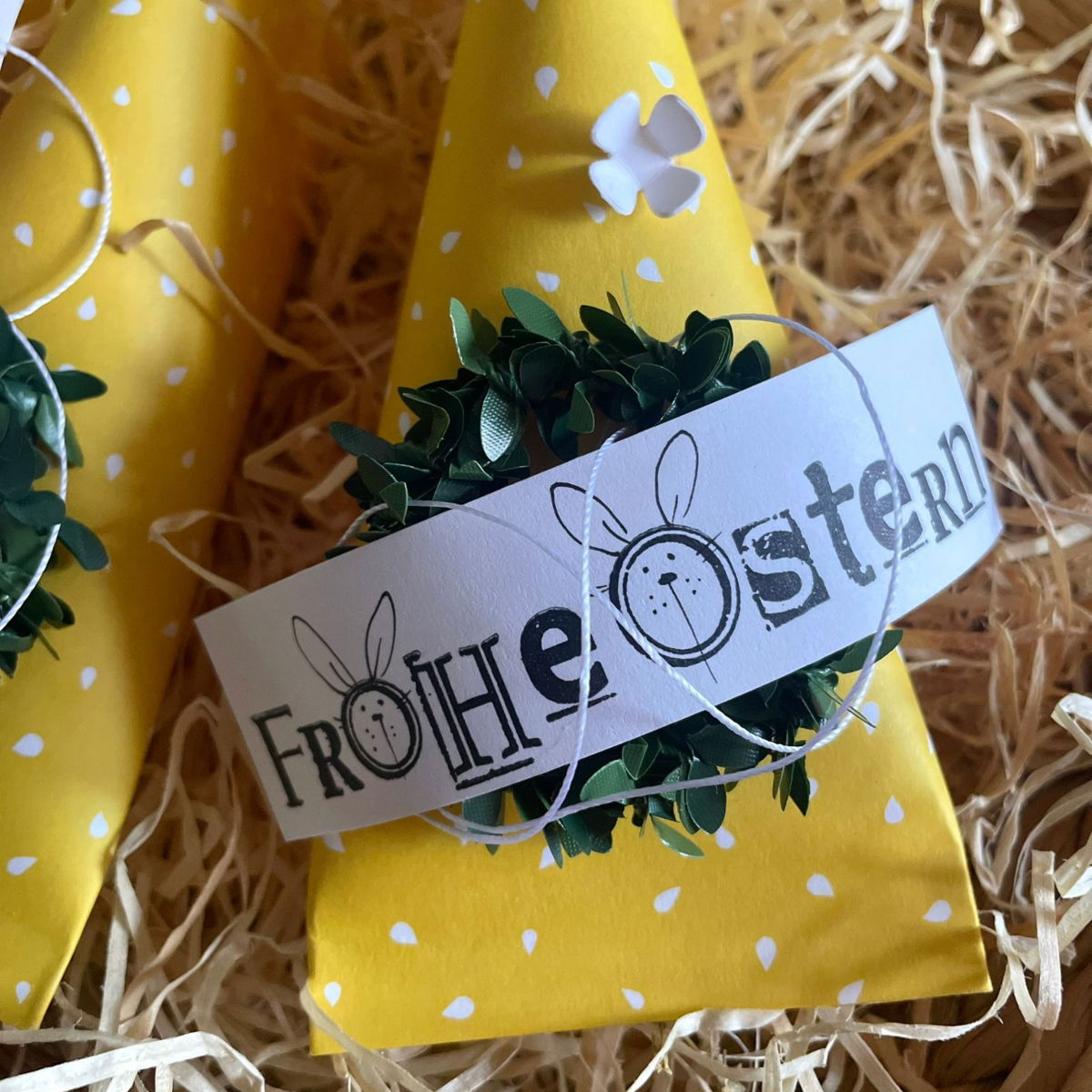 Designpapier - Basic - Ostergelb - Apfelkernchen + Schrift - Doppelseitig bedruckt
