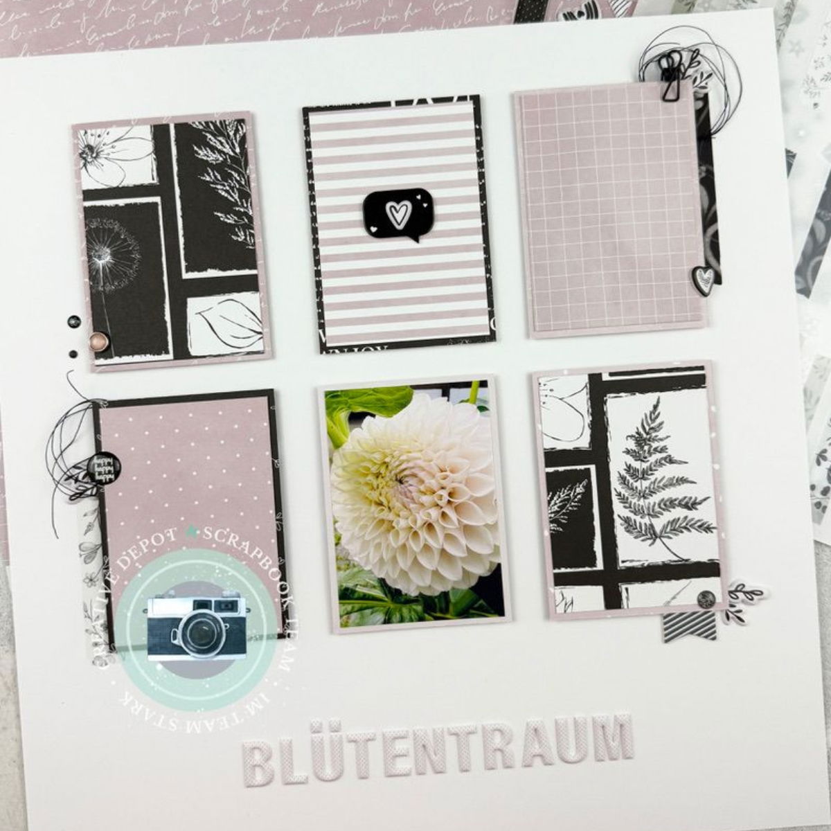 Designpapier - Basic - Schwarz - Newspaper + Wildflowers - Doppelseitig bedruckt