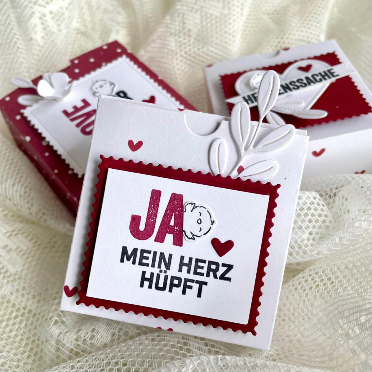 Die fertige Faltbox hat eine Größe von ca. 6,7 x 6,7 x 3,3 cm