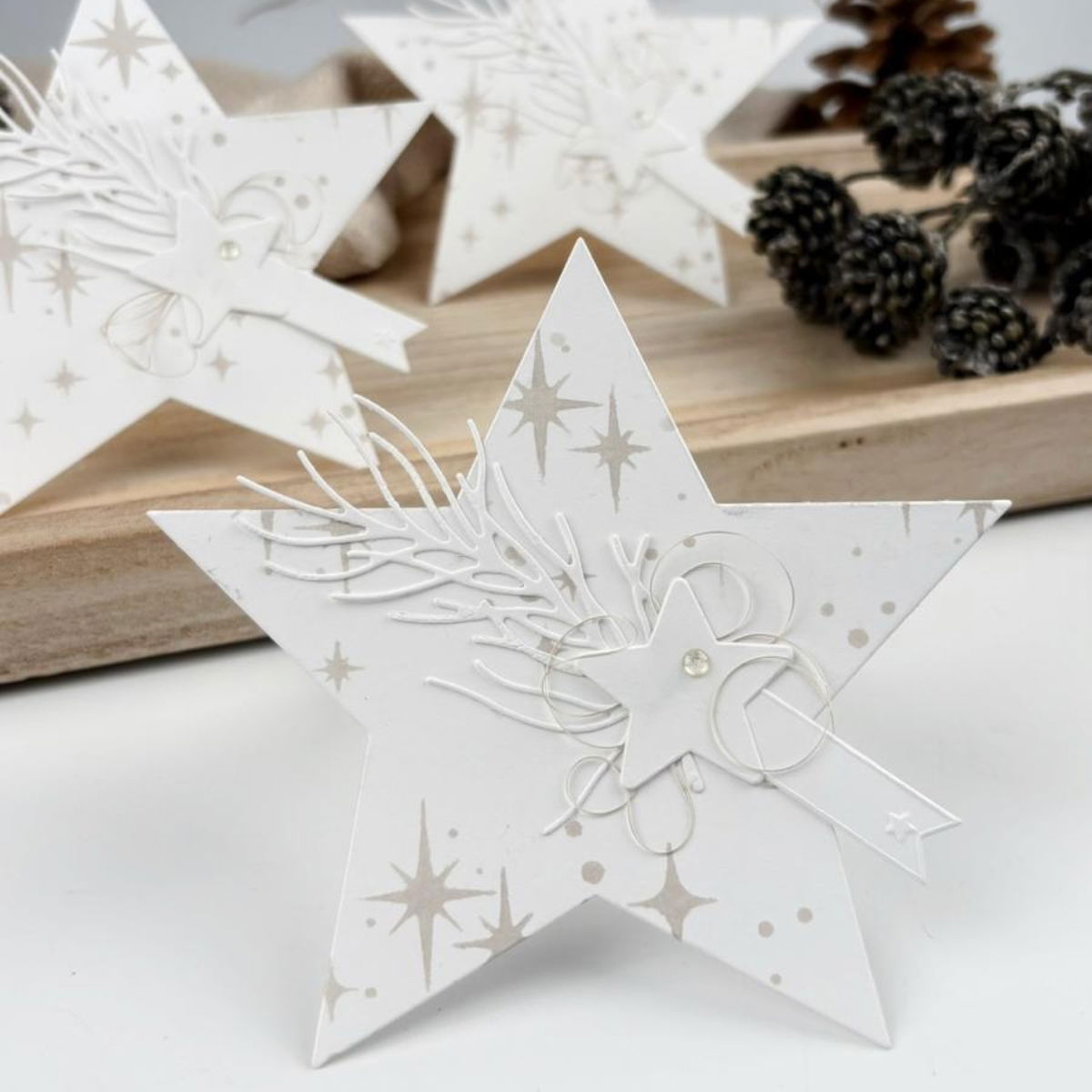 ✨ Tipp: Stanze die Zweige aus grünem Karton und die Sterne aus Gold- oder Glitzerpapier – so entsteht eine festliche Girlande, die du wunderbar auf Karten, Geschenken oder in kleinen Rahmenarrangements einsetzen kannst!