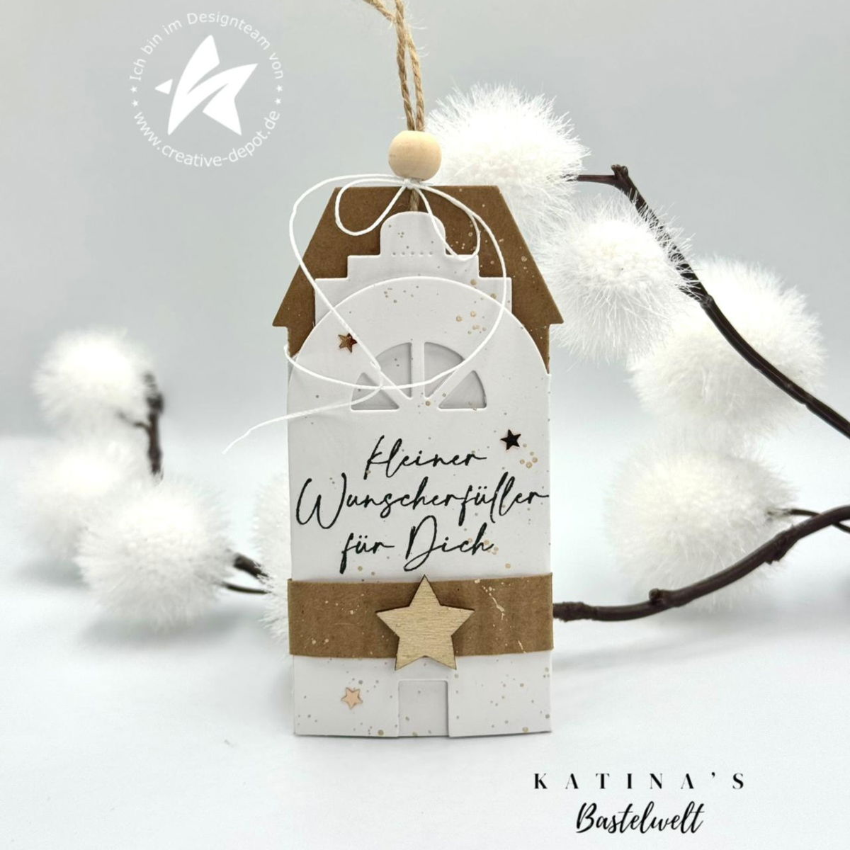 Tischdeko oder Mini-Diorama: als kleine aufstellbare Häuschenszene für saisonale Dekoration