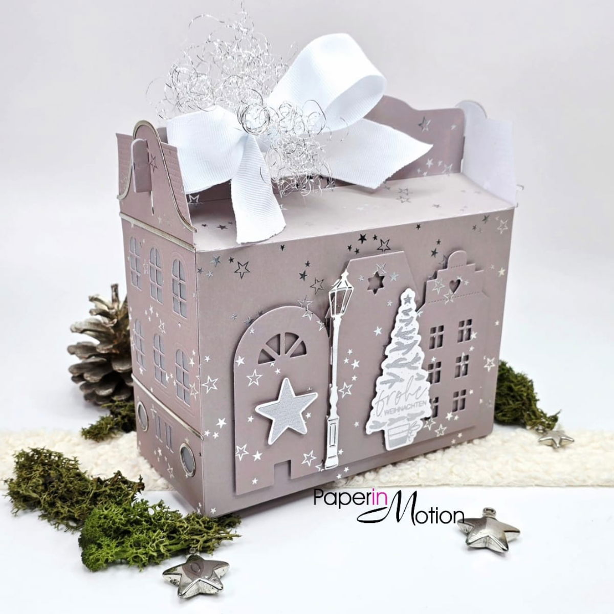 Die Stanze ist so konzipiert, dass die Karte flach bleibt, aber beim Aufklappen eine dreidimensionale Stadt- oder Häuschenszene entsteht – ein echter Hingucker!