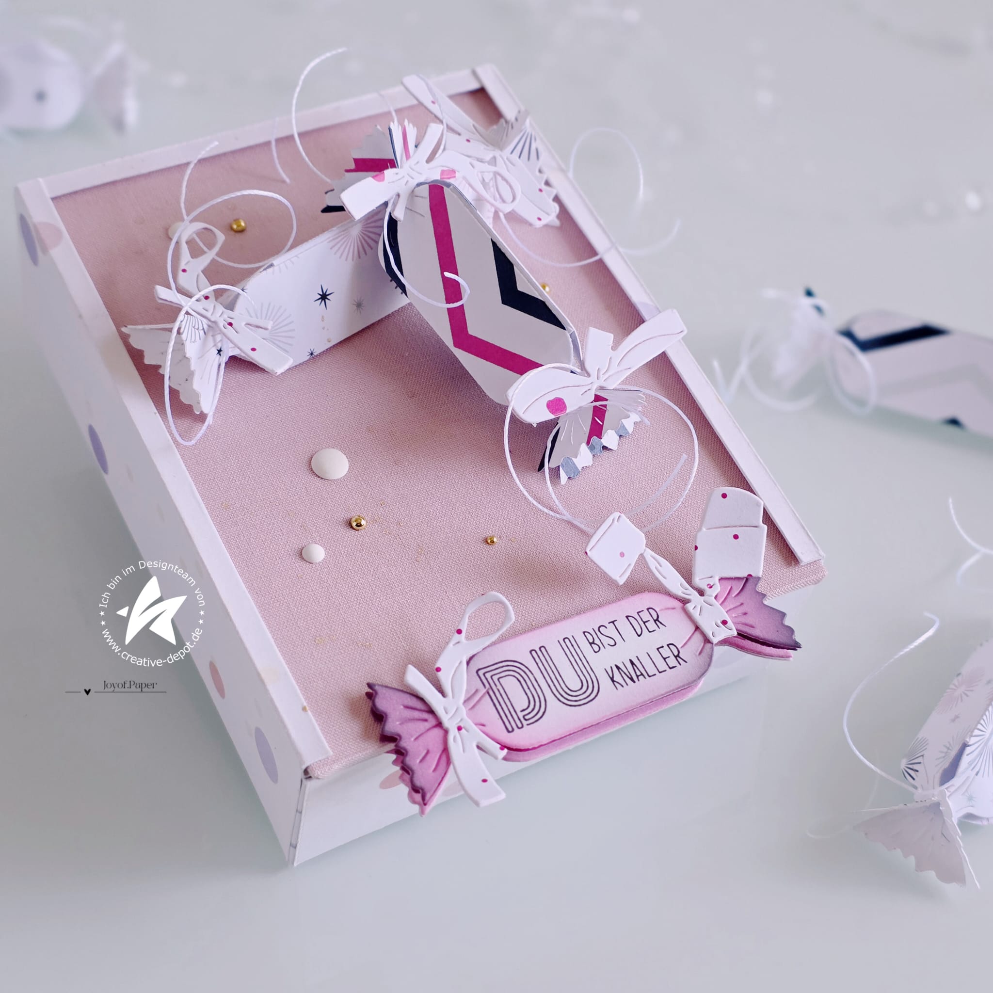 Durch die detailreichen Stanzformen kannst du dein Knallbonbon in jedem Stil gestalten – von edel und elegant bis bunt und verspielt.